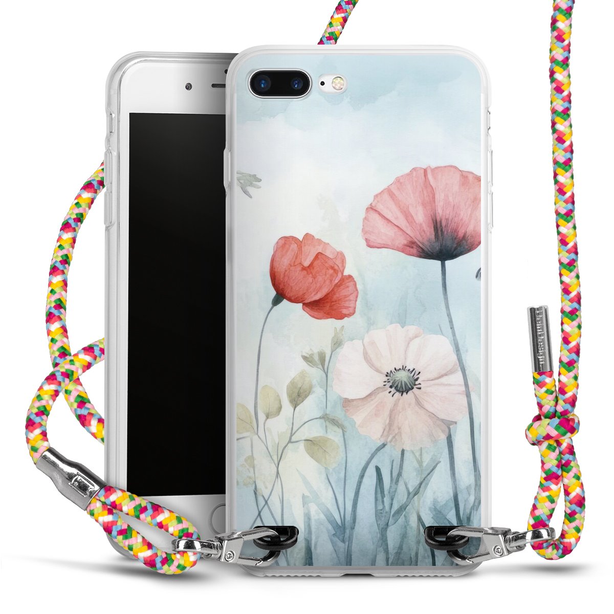 The flexible case is made from a highquality TPU material (thermoplastic Polyurethan). Thanks to its longlasting and break resistant characterisitcs, the case is flexible yet consistent in form and has a great grip and feel. The textile strap made from Polyester gives a chic yet casual accent allowing you to carry your phone like a bag or necklace - a practical gadget perfect for your next adventure. The textile strap is about 1.70 meters long and the length can easily be adjusted through the knots. Our Carry Case is available in Colourful, Mint-Camouflage, Very-Berry, Sahara-Sand and Sparkling-Neon. The ends of the textile strap are covered with metallic end caps to protect them against fraying.