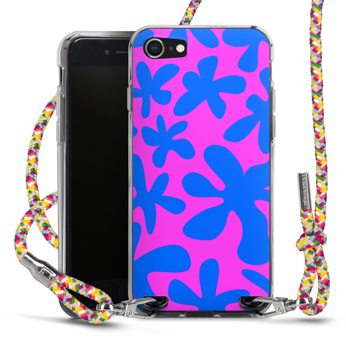 The flexible case is made from a highquality TPU material (thermoplastic Polyurethan). Thanks to its longlasting and break resistant characterisitcs, the case is flexible yet consistent in form and has a great grip and feel. The textile strap made from Polyester gives a chic yet casual accent allowing you to carry your phone like a bag or necklace - a practical gadget perfect for your next adventure. The textile strap is about 1.70 meters long and the length can easily be adjusted through the knots. Our Carry Case is available in Colourful, Mint-Camouflage, Very-Berry, Sahara-Sand and Sparkling-Neon. The ends of the textile strap are covered with metallic end caps to protect them against fraying.