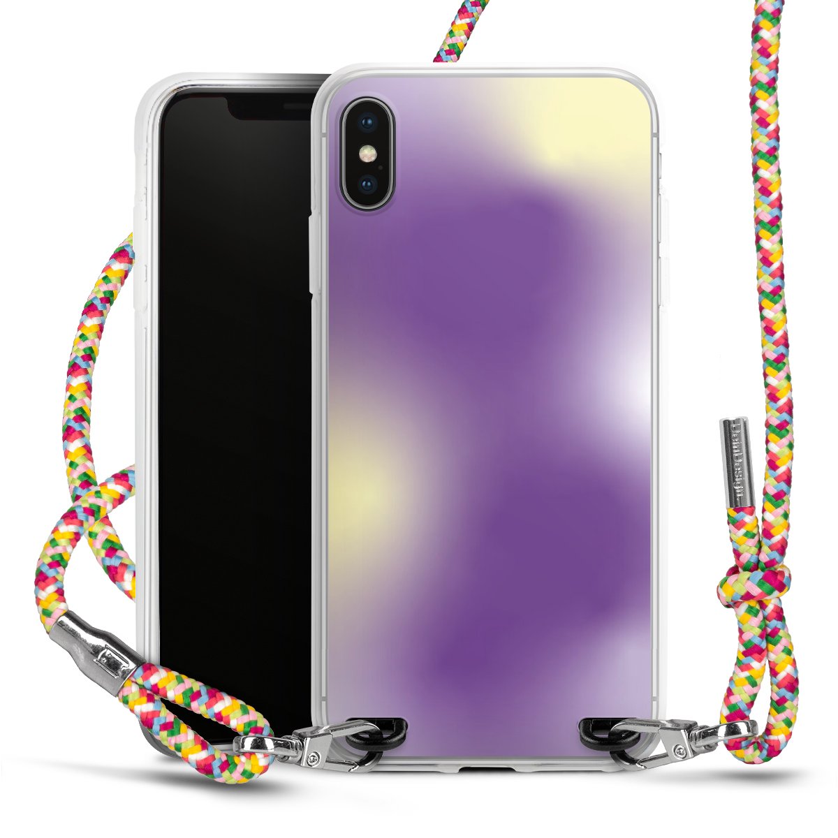 The flexible case is made from a highquality TPU material (thermoplastic Polyurethan). Thanks to its longlasting and break resistant characterisitcs, the case is flexible yet consistent in form and has a great grip and feel. The textile strap made from Polyester gives a chic yet casual accent allowing you to carry your phone like a bag or necklace - a practical gadget perfect for your next adventure. The textile strap is about 1.70 meters long and the length can easily be adjusted through the knots. Our Carry Case is available in Colourful, Mint-Camouflage, Very-Berry, Sahara-Sand and Sparkling-Neon. The ends of the textile strap are covered with metallic end caps to protect them against fraying.