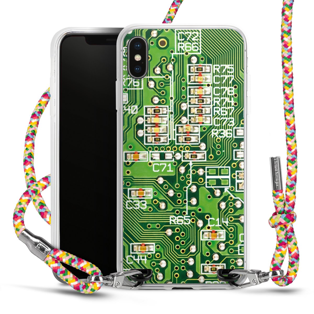 The flexible case is made from a highquality TPU material (thermoplastic Polyurethan). Thanks to its longlasting and break resistant characterisitcs, the case is flexible yet consistent in form and has a great grip and feel. The textile strap made from Polyester gives a chic yet casual accent allowing you to carry your phone like a bag or necklace - a practical gadget perfect for your next adventure. The textile strap is about 1.70 meters long and the length can easily be adjusted through the knots. Our Carry Case is available in Colourful, Mint-Camouflage, Very-Berry, Sahara-Sand and Sparkling-Neon. The ends of the textile strap are covered with metallic end caps to protect them against fraying.