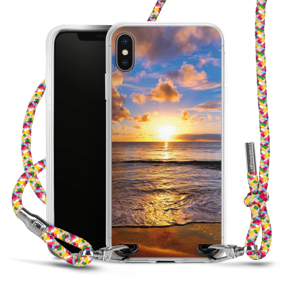 The flexible case is made from a highquality TPU material (thermoplastic Polyurethan). Thanks to its longlasting and break resistant characterisitcs, the case is flexible yet consistent in form and has a great grip and feel. The textile strap made from Polyester gives a chic yet casual accent allowing you to carry your phone like a bag or necklace - a practical gadget perfect for your next adventure. The textile strap is about 1.70 meters long and the length can easily be adjusted through the knots. Our Carry Case is available in Colourful, Mint-Camouflage, Very-Berry, Sahara-Sand and Sparkling-Neon. The ends of the textile strap are covered with metallic end caps to protect them against fraying.
