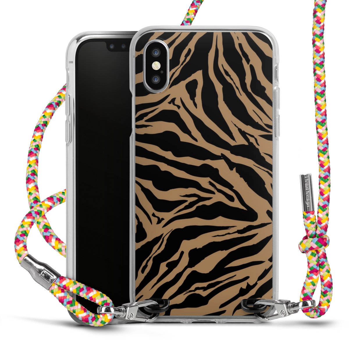 The flexible case is made from a highquality TPU material (thermoplastic Polyurethan). Thanks to its longlasting and break resistant characterisitcs, the case is flexible yet consistent in form and has a great grip and feel. The textile strap made from Polyester gives a chic yet casual accent allowing you to carry your phone like a bag or necklace - a practical gadget perfect for your next adventure. The textile strap is about 1.70 meters long and the length can easily be adjusted through the knots. Our Carry Case is available in Colourful, Mint-Camouflage, Very-Berry, Sahara-Sand and Sparkling-Neon. The ends of the textile strap are covered with metallic end caps to protect them against fraying.