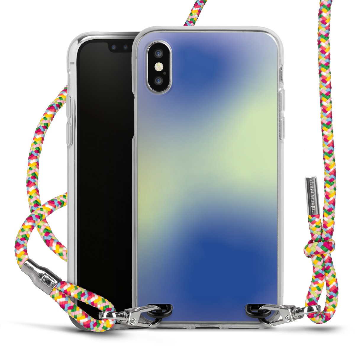 The flexible case is made from a highquality TPU material (thermoplastic Polyurethan). Thanks to its longlasting and break resistant characterisitcs, the case is flexible yet consistent in form and has a great grip and feel. The textile strap made from Polyester gives a chic yet casual accent allowing you to carry your phone like a bag or necklace - a practical gadget perfect for your next adventure. The textile strap is about 1.70 meters long and the length can easily be adjusted through the knots. Our Carry Case is available in Colourful, Mint-Camouflage, Very-Berry, Sahara-Sand and Sparkling-Neon. The ends of the textile strap are covered with metallic end caps to protect them against fraying.
