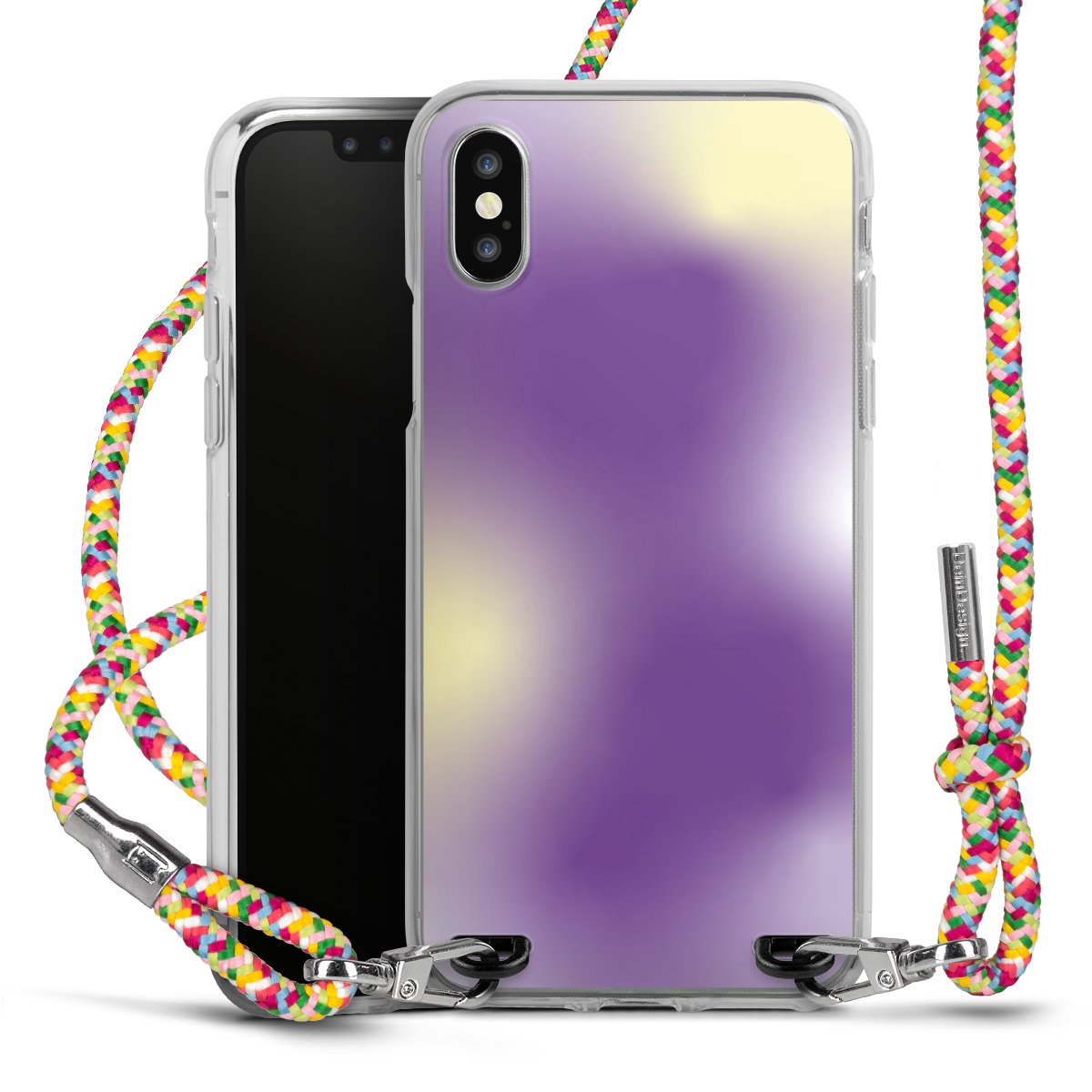 The flexible case is made from a highquality TPU material (thermoplastic Polyurethan). Thanks to its longlasting and break resistant characterisitcs, the case is flexible yet consistent in form and has a great grip and feel. The textile strap made from Polyester gives a chic yet casual accent allowing you to carry your phone like a bag or necklace - a practical gadget perfect for your next adventure. The textile strap is about 1.70 meters long and the length can easily be adjusted through the knots. Our Carry Case is available in Colourful, Mint-Camouflage, Very-Berry, Sahara-Sand and Sparkling-Neon. The ends of the textile strap are covered with metallic end caps to protect them against fraying.