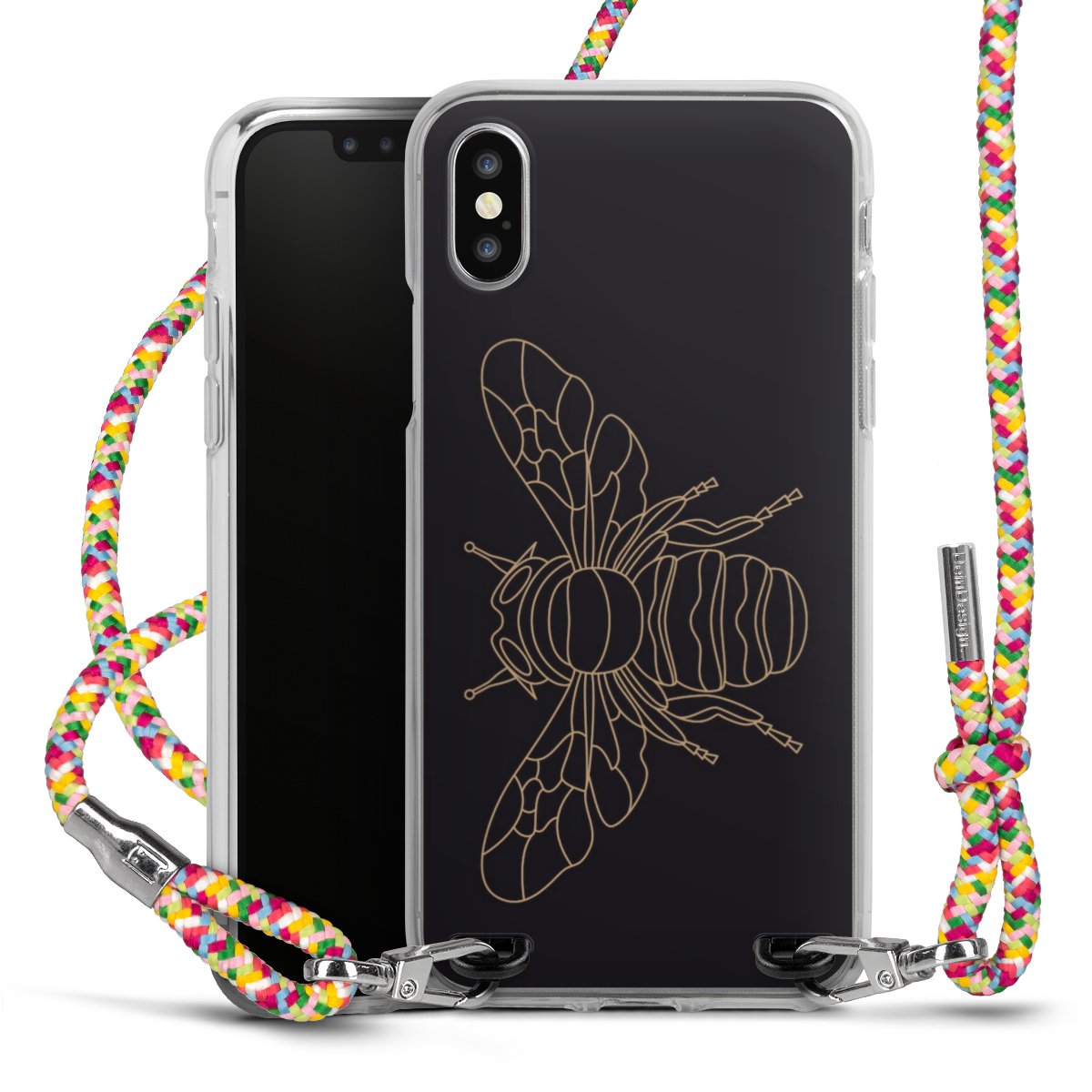 The flexible case is made from a highquality TPU material (thermoplastic Polyurethan). Thanks to its longlasting and break resistant characterisitcs, the case is flexible yet consistent in form and has a great grip and feel. The textile strap made from Polyester gives a chic yet casual accent allowing you to carry your phone like a bag or necklace - a practical gadget perfect for your next adventure. The textile strap is about 1.70 meters long and the length can easily be adjusted through the knots. Our Carry Case is available in Colourful, Mint-Camouflage, Very-Berry, Sahara-Sand and Sparkling-Neon. The ends of the textile strap are covered with metallic end caps to protect them against fraying.