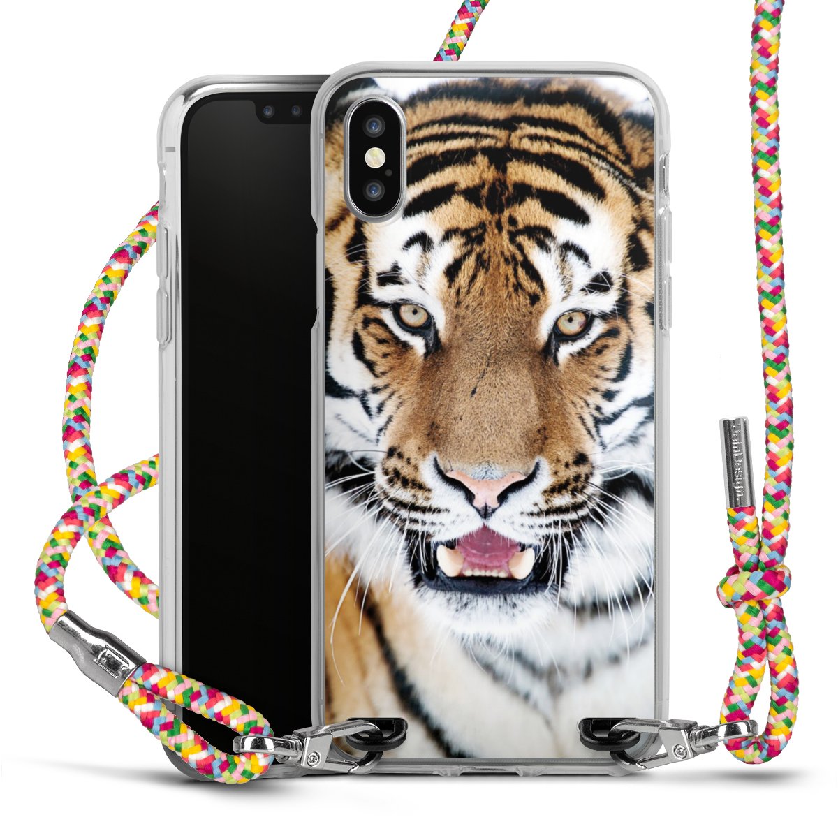 The flexible case is made from a highquality TPU material (thermoplastic Polyurethan). Thanks to its longlasting and break resistant characterisitcs, the case is flexible yet consistent in form and has a great grip and feel. The textile strap made from Polyester gives a chic yet casual accent allowing you to carry your phone like a bag or necklace - a practical gadget perfect for your next adventure. The textile strap is about 1.70 meters long and the length can easily be adjusted through the knots. Our Carry Case is available in Colourful, Mint-Camouflage, Very-Berry, Sahara-Sand and Sparkling-Neon. The ends of the textile strap are covered with metallic end caps to protect them against fraying.