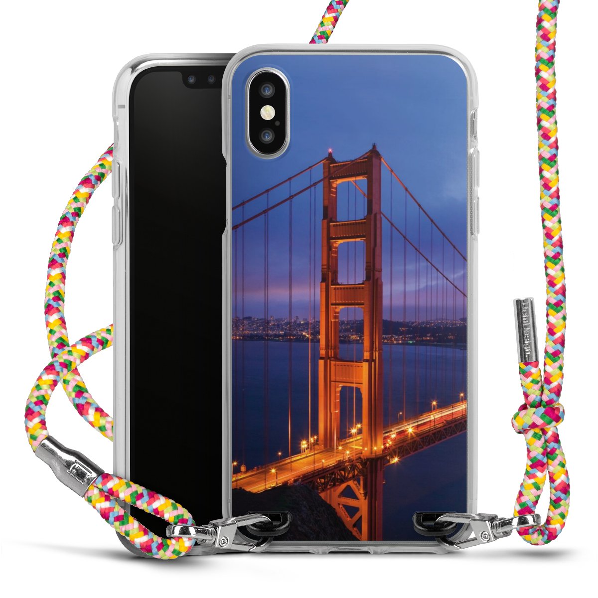 The flexible case is made from a highquality TPU material (thermoplastic Polyurethan). Thanks to its longlasting and break resistant characterisitcs, the case is flexible yet consistent in form and has a great grip and feel. The textile strap made from Polyester gives a chic yet casual accent allowing you to carry your phone like a bag or necklace - a practical gadget perfect for your next adventure. The textile strap is about 1.70 meters long and the length can easily be adjusted through the knots. Our Carry Case is available in Colourful, Mint-Camouflage, Very-Berry, Sahara-Sand and Sparkling-Neon. The ends of the textile strap are covered with metallic end caps to protect them against fraying.