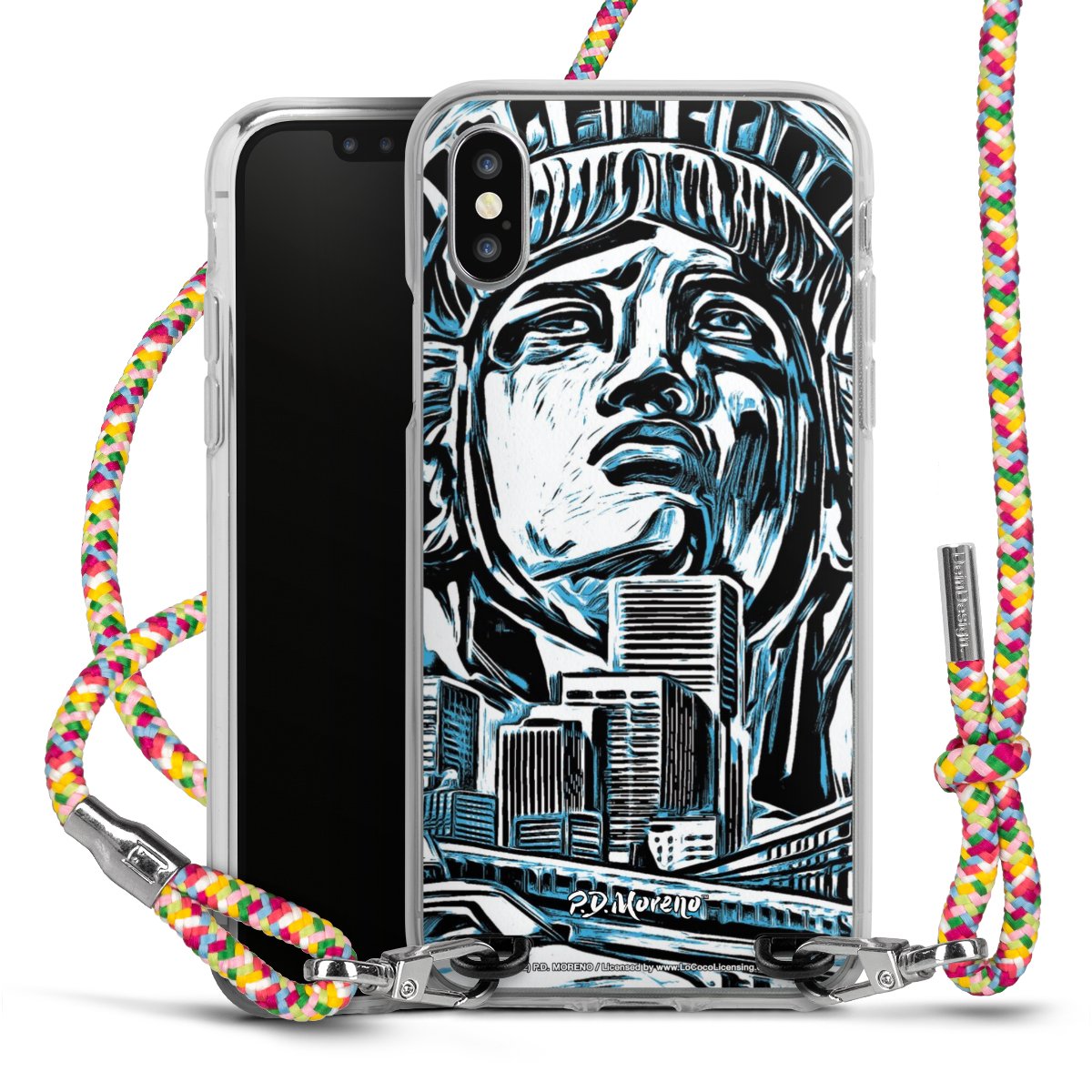 The flexible case is made from a highquality TPU material (thermoplastic Polyurethan). Thanks to its longlasting and break resistant characterisitcs, the case is flexible yet consistent in form and has a great grip and feel. The textile strap made from Polyester gives a chic yet casual accent allowing you to carry your phone like a bag or necklace - a practical gadget perfect for your next adventure. The textile strap is about 1.70 meters long and the length can easily be adjusted through the knots. Our Carry Case is available in Colourful, Mint-Camouflage, Very-Berry, Sahara-Sand and Sparkling-Neon. The ends of the textile strap are covered with metallic end caps to protect them against fraying.