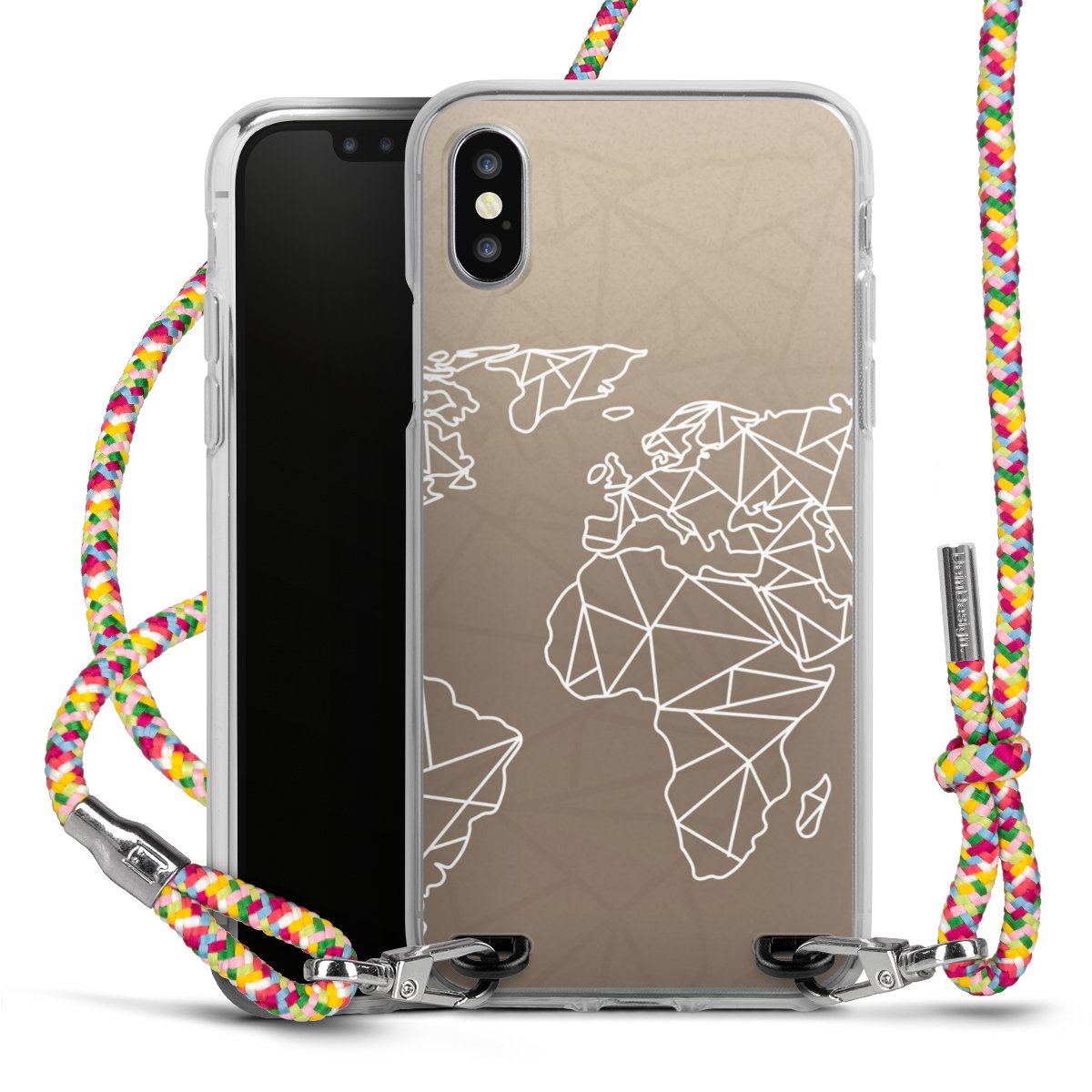 The flexible case is made from a highquality TPU material (thermoplastic Polyurethan). Thanks to its longlasting and break resistant characterisitcs, the case is flexible yet consistent in form and has a great grip and feel. The textile strap made from Polyester gives a chic yet casual accent allowing you to carry your phone like a bag or necklace - a practical gadget perfect for your next adventure. The textile strap is about 1.70 meters long and the length can easily be adjusted through the knots. Our Carry Case is available in Colourful, Mint-Camouflage, Very-Berry, Sahara-Sand and Sparkling-Neon. The ends of the textile strap are covered with metallic end caps to protect them against fraying.