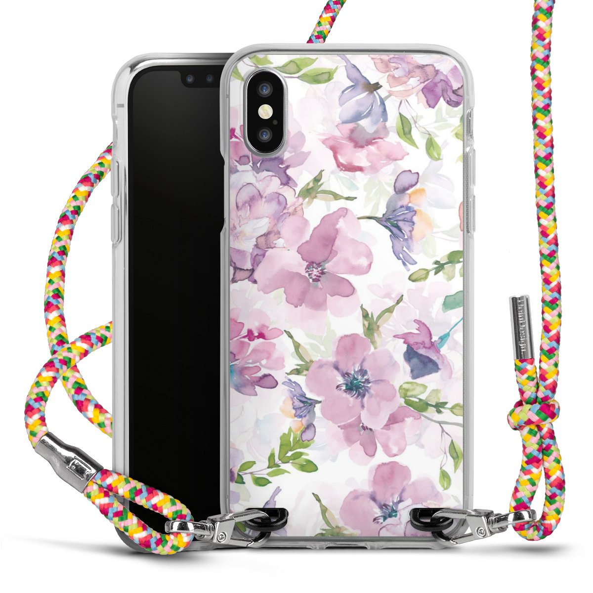 The flexible case is made from a highquality TPU material (thermoplastic Polyurethan). Thanks to its longlasting and break resistant characterisitcs, the case is flexible yet consistent in form and has a great grip and feel. The textile strap made from Polyester gives a chic yet casual accent allowing you to carry your phone like a bag or necklace - a practical gadget perfect for your next adventure. The textile strap is about 1.70 meters long and the length can easily be adjusted through the knots. Our Carry Case is available in Colourful, Mint-Camouflage, Very-Berry, Sahara-Sand and Sparkling-Neon. The ends of the textile strap are covered with metallic end caps to protect them against fraying.