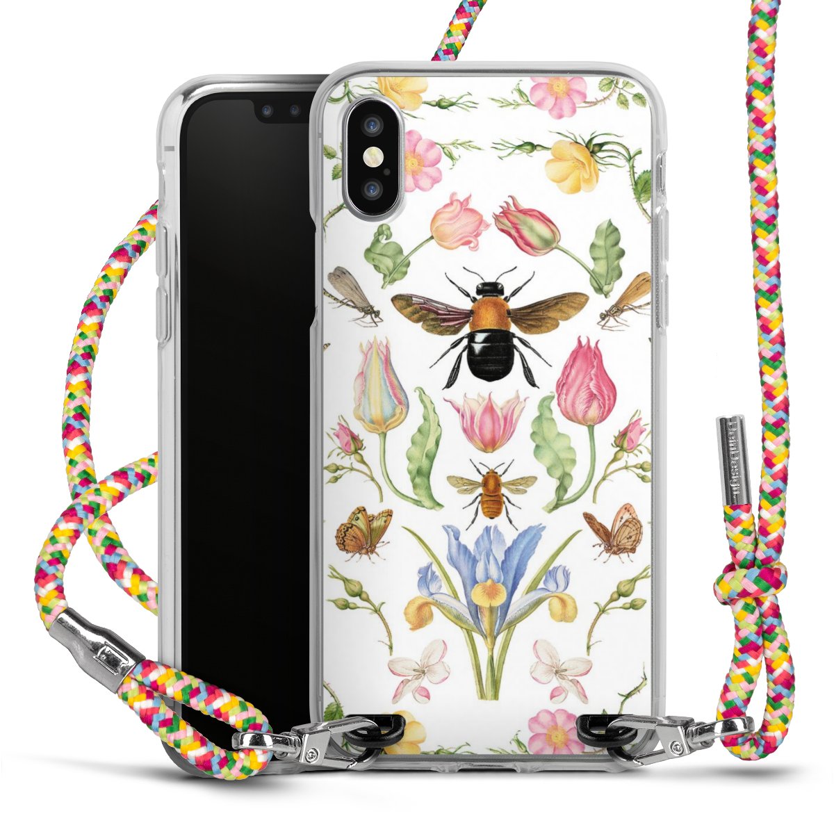 The flexible case is made from a highquality TPU material (thermoplastic Polyurethan). Thanks to its longlasting and break resistant characterisitcs, the case is flexible yet consistent in form and has a great grip and feel. The textile strap made from Polyester gives a chic yet casual accent allowing you to carry your phone like a bag or necklace - a practical gadget perfect for your next adventure. The textile strap is about 1.70 meters long and the length can easily be adjusted through the knots. Our Carry Case is available in Colourful, Mint-Camouflage, Very-Berry, Sahara-Sand and Sparkling-Neon. The ends of the textile strap are covered with metallic end caps to protect them against fraying.