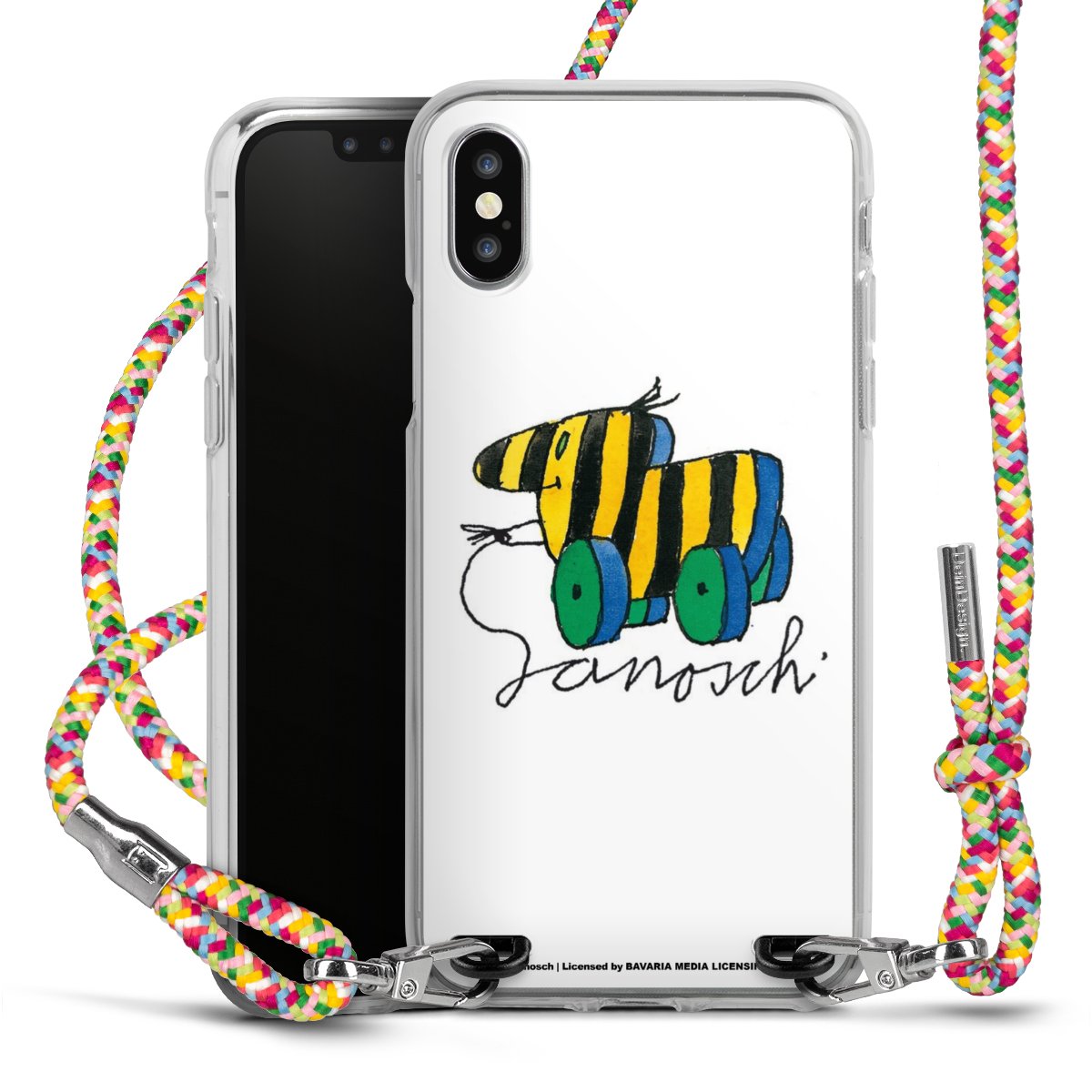 The flexible case is made from a highquality TPU material (thermoplastic Polyurethan). Thanks to its longlasting and break resistant characterisitcs, the case is flexible yet consistent in form and has a great grip and feel. The textile strap made from Polyester gives a chic yet casual accent allowing you to carry your phone like a bag or necklace - a practical gadget perfect for your next adventure. The textile strap is about 1.70 meters long and the length can easily be adjusted through the knots. Our Carry Case is available in Colourful, Mint-Camouflage, Very-Berry, Sahara-Sand and Sparkling-Neon. The ends of the textile strap are covered with metallic end caps to protect them against fraying.