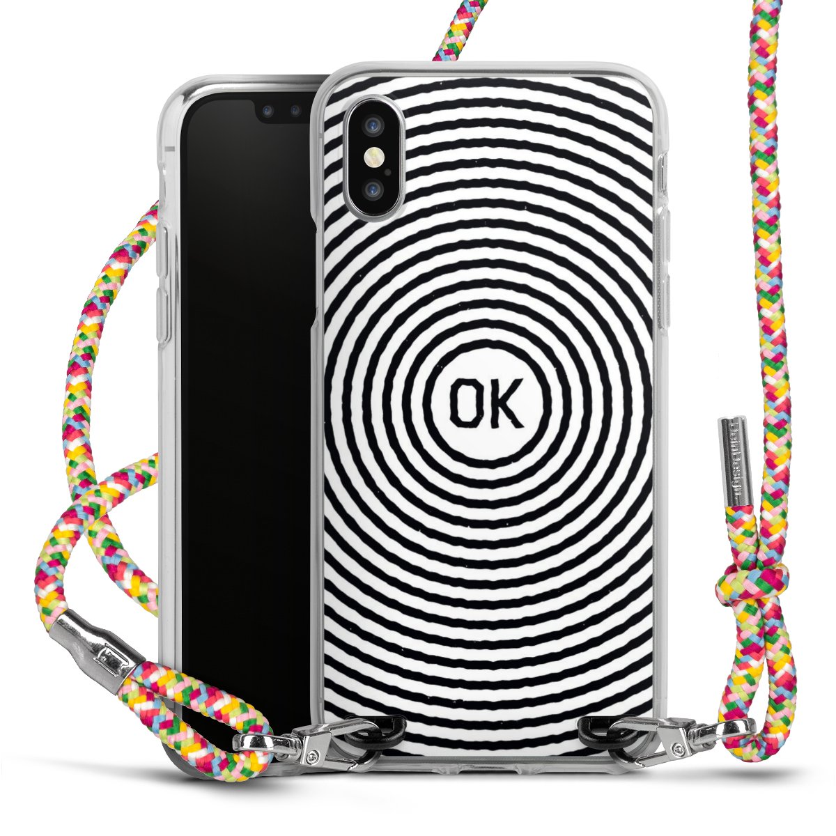 The flexible case is made from a highquality TPU material (thermoplastic Polyurethan). Thanks to its longlasting and break resistant characterisitcs, the case is flexible yet consistent in form and has a great grip and feel. The textile strap made from Polyester gives a chic yet casual accent allowing you to carry your phone like a bag or necklace - a practical gadget perfect for your next adventure. The textile strap is about 1.70 meters long and the length can easily be adjusted through the knots. Our Carry Case is available in Colourful, Mint-Camouflage, Very-Berry, Sahara-Sand and Sparkling-Neon. The ends of the textile strap are covered with metallic end caps to protect them against fraying.
