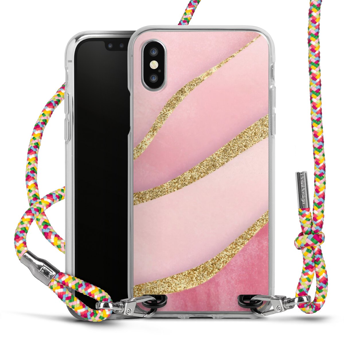 The flexible case is made from a highquality TPU material (thermoplastic Polyurethan). Thanks to its longlasting and break resistant characterisitcs, the case is flexible yet consistent in form and has a great grip and feel. The textile strap made from Polyester gives a chic yet casual accent allowing you to carry your phone like a bag or necklace - a practical gadget perfect for your next adventure. The textile strap is about 1.70 meters long and the length can easily be adjusted through the knots. Our Carry Case is available in Colourful, Mint-Camouflage, Very-Berry, Sahara-Sand and Sparkling-Neon. The ends of the textile strap are covered with metallic end caps to protect them against fraying.