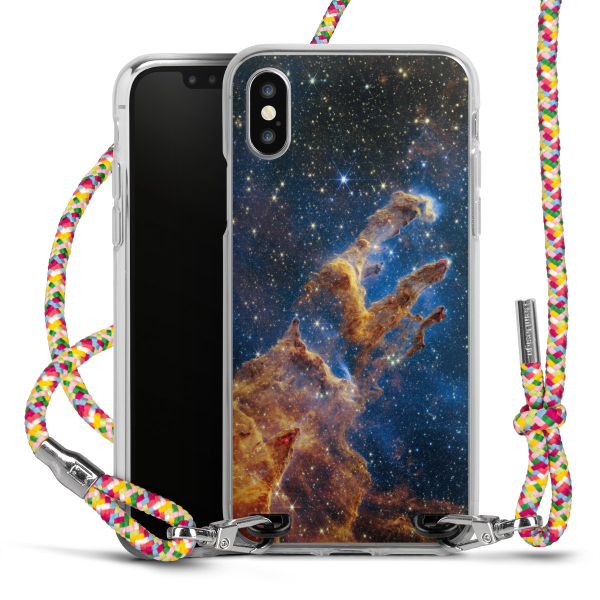 The flexible case is made from a highquality TPU material (thermoplastic Polyurethan). Thanks to its longlasting and break resistant characterisitcs, the case is flexible yet consistent in form and has a great grip and feel. The textile strap made from Polyester gives a chic yet casual accent allowing you to carry your phone like a bag or necklace - a practical gadget perfect for your next adventure. The textile strap is about 1.70 meters long and the length can easily be adjusted through the knots. Our Carry Case is available in Colourful, Mint-Camouflage, Very-Berry, Sahara-Sand and Sparkling-Neon. The ends of the textile strap are covered with metallic end caps to protect them against fraying.