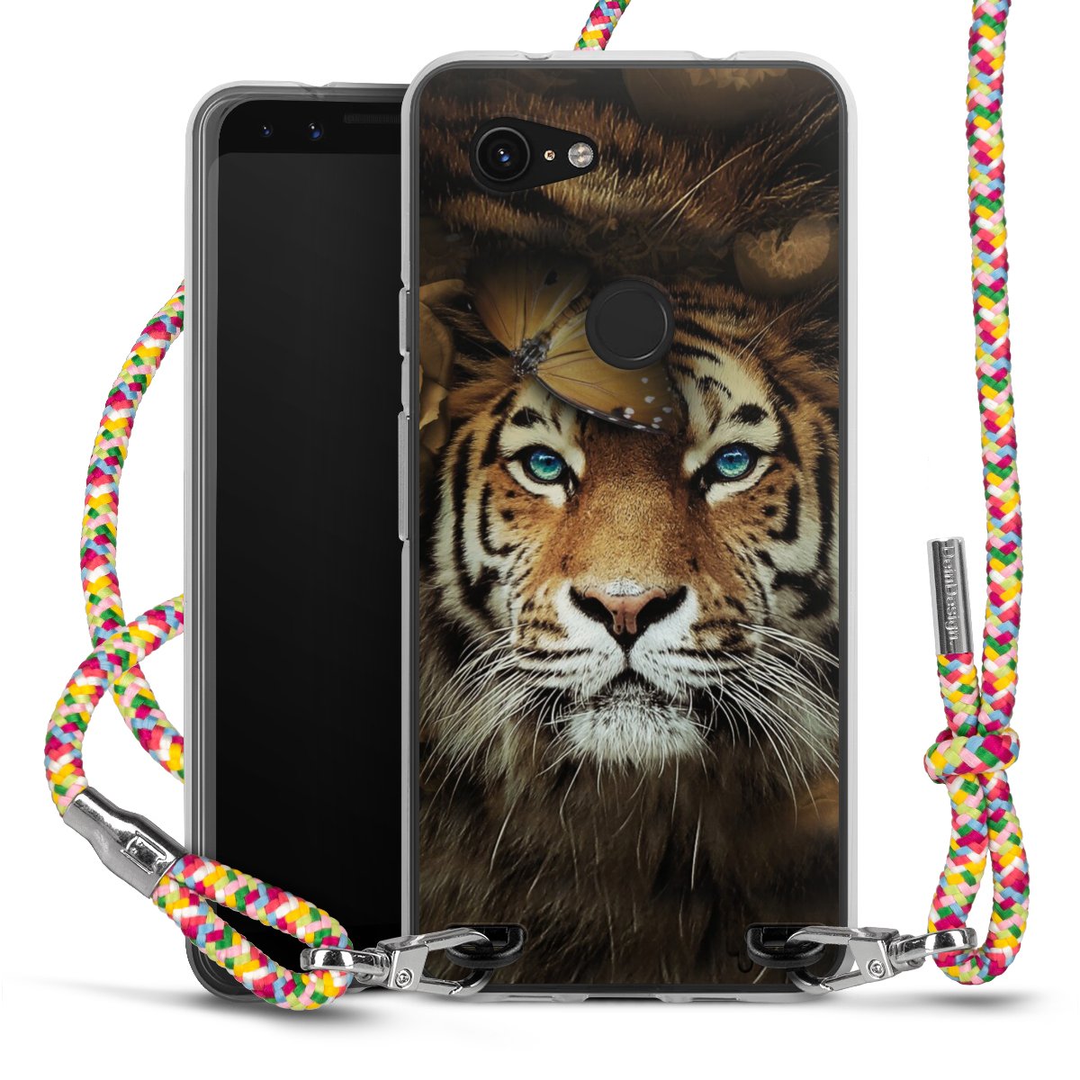 The flexible case is made from a highquality TPU material (thermoplastic Polyurethan). Thanks to its longlasting and break resistant characterisitcs, the case is flexible yet consistent in form and has a great grip and feel. The textile strap made from Polyester gives a chic yet casual accent allowing you to carry your phone like a bag or necklace - a practical gadget perfect for your next adventure. The textile strap is about 1.70 meters long and the length can easily be adjusted through the knots. Our Carry Case is available in Colourful, Mint-Camouflage, Very-Berry, Sahara-Sand and Sparkling-Neon. The ends of the textile strap are covered with metallic end caps to protect them against fraying.