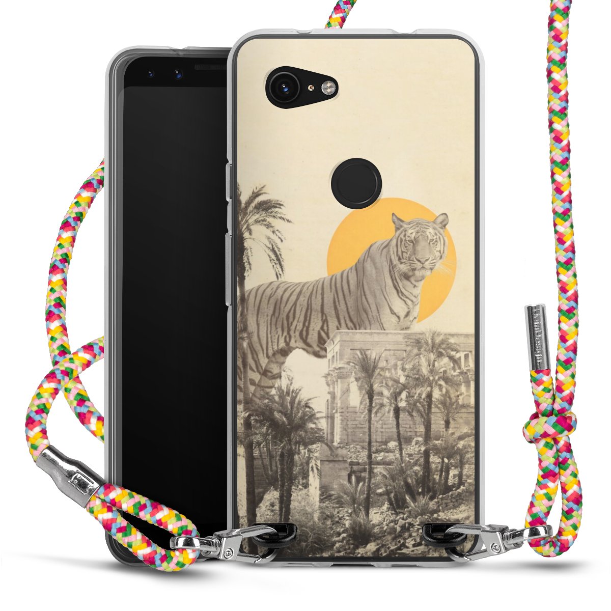 The flexible case is made from a highquality TPU material (thermoplastic Polyurethan). Thanks to its longlasting and break resistant characterisitcs, the case is flexible yet consistent in form and has a great grip and feel. The textile strap made from Polyester gives a chic yet casual accent allowing you to carry your phone like a bag or necklace - a practical gadget perfect for your next adventure. The textile strap is about 1.70 meters long and the length can easily be adjusted through the knots. Our Carry Case is available in Colourful, Mint-Camouflage, Very-Berry, Sahara-Sand and Sparkling-Neon. The ends of the textile strap are covered with metallic end caps to protect them against fraying.