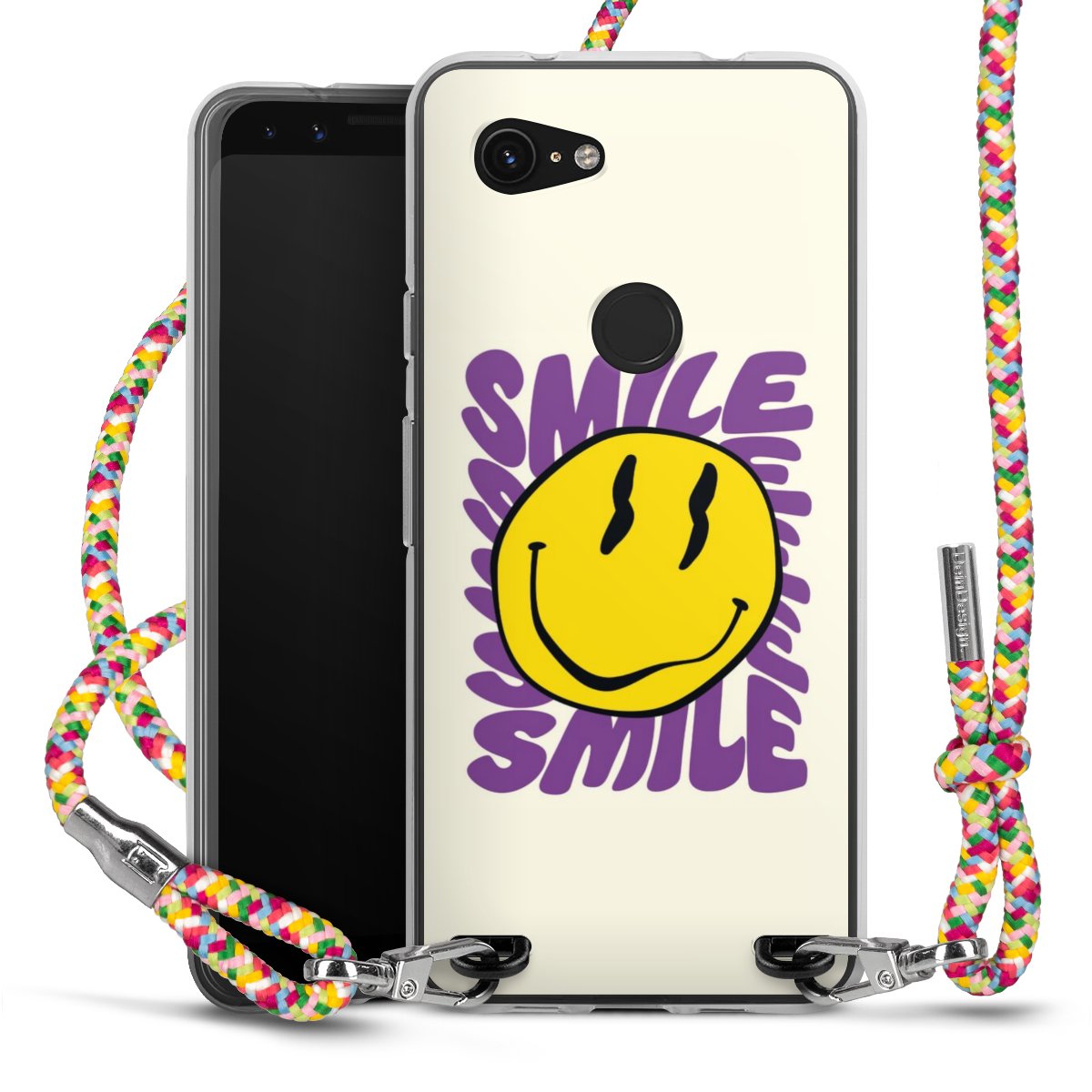 The flexible case is made from a highquality TPU material (thermoplastic Polyurethan). Thanks to its longlasting and break resistant characterisitcs, the case is flexible yet consistent in form and has a great grip and feel. The textile strap made from Polyester gives a chic yet casual accent allowing you to carry your phone like a bag or necklace - a practical gadget perfect for your next adventure. The textile strap is about 1.70 meters long and the length can easily be adjusted through the knots. Our Carry Case is available in Colourful, Mint-Camouflage, Very-Berry, Sahara-Sand and Sparkling-Neon. The ends of the textile strap are covered with metallic end caps to protect them against fraying.