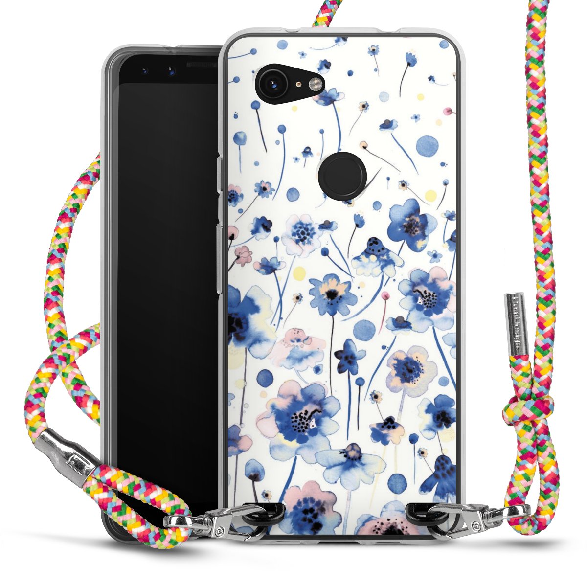 The flexible case is made from a highquality TPU material (thermoplastic Polyurethan). Thanks to its longlasting and break resistant characterisitcs, the case is flexible yet consistent in form and has a great grip and feel. The textile strap made from Polyester gives a chic yet casual accent allowing you to carry your phone like a bag or necklace - a practical gadget perfect for your next adventure. The textile strap is about 1.70 meters long and the length can easily be adjusted through the knots. Our Carry Case is available in Colourful, Mint-Camouflage, Very-Berry, Sahara-Sand and Sparkling-Neon. The ends of the textile strap are covered with metallic end caps to protect them against fraying.