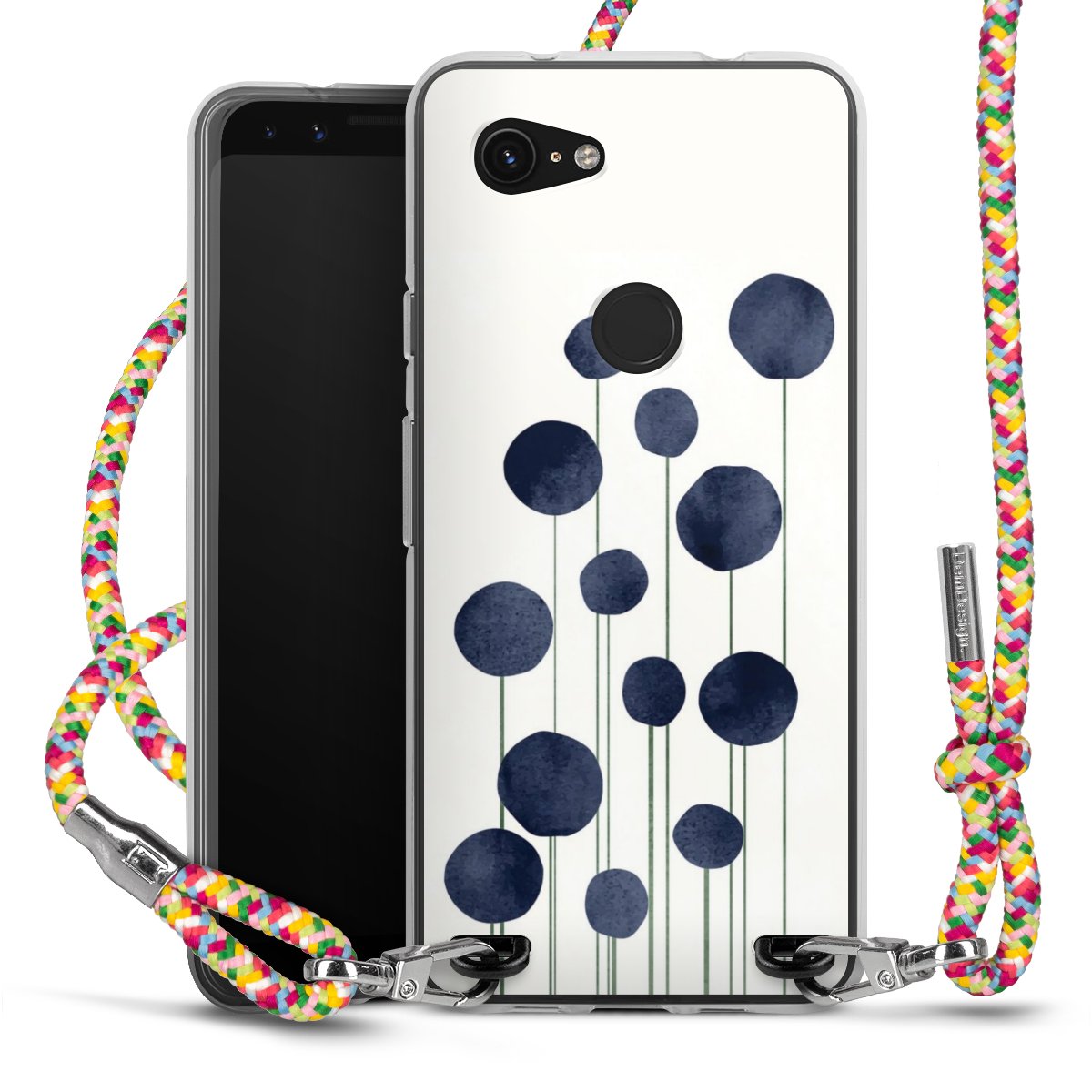 The flexible case is made from a highquality TPU material (thermoplastic Polyurethan). Thanks to its longlasting and break resistant characterisitcs, the case is flexible yet consistent in form and has a great grip and feel. The textile strap made from Polyester gives a chic yet casual accent allowing you to carry your phone like a bag or necklace - a practical gadget perfect for your next adventure. The textile strap is about 1.70 meters long and the length can easily be adjusted through the knots. Our Carry Case is available in Colourful, Mint-Camouflage, Very-Berry, Sahara-Sand and Sparkling-Neon. The ends of the textile strap are covered with metallic end caps to protect them against fraying.