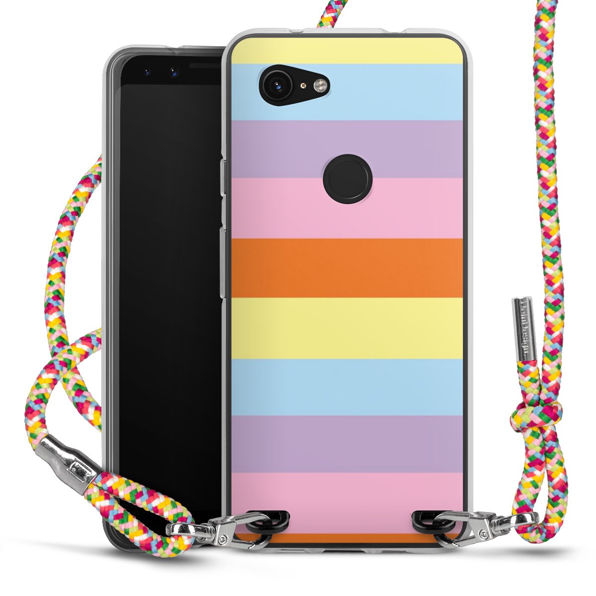 The flexible case is made from a highquality TPU material (thermoplastic Polyurethan). Thanks to its longlasting and break resistant characterisitcs, the case is flexible yet consistent in form and has a great grip and feel. The textile strap made from Polyester gives a chic yet casual accent allowing you to carry your phone like a bag or necklace - a practical gadget perfect for your next adventure. The textile strap is about 1.70 meters long and the length can easily be adjusted through the knots. Our Carry Case is available in Colourful, Mint-Camouflage, Very-Berry, Sahara-Sand and Sparkling-Neon. The ends of the textile strap are covered with metallic end caps to protect them against fraying.