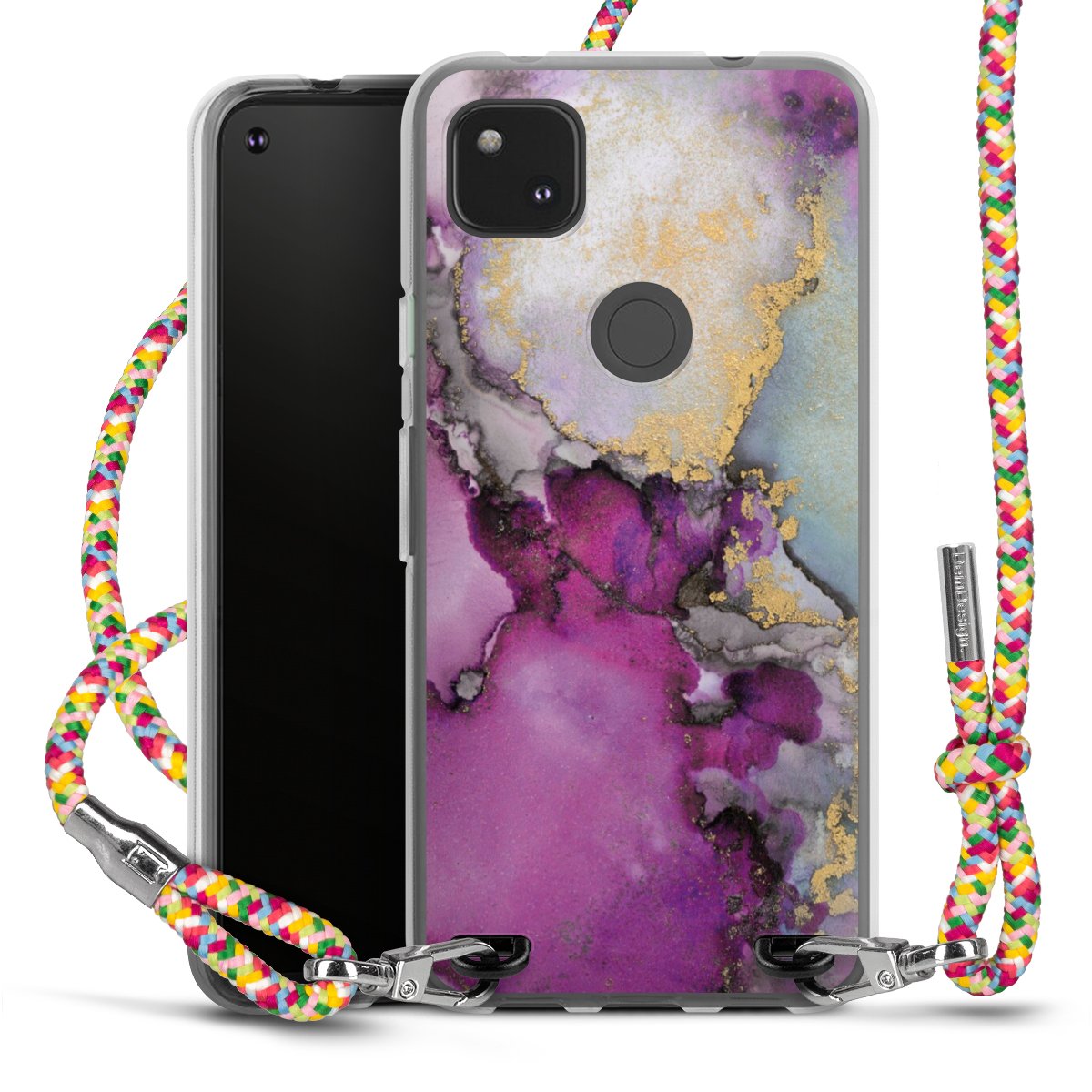 The flexible case is made from a highquality TPU material (thermoplastic Polyurethan). Thanks to its longlasting and break resistant characterisitcs, the case is flexible yet consistent in form and has a great grip and feel. The textile strap made from Polyester gives a chic yet casual accent allowing you to carry your phone like a bag or necklace - a practical gadget perfect for your next adventure. The textile strap is about 1.70 meters long and the length can easily be adjusted through the knots. Our Carry Case is available in Colourful, Mint-Camouflage, Very-Berry, Sahara-Sand and Sparkling-Neon. The ends of the textile strap are covered with metallic end caps to protect them against fraying.