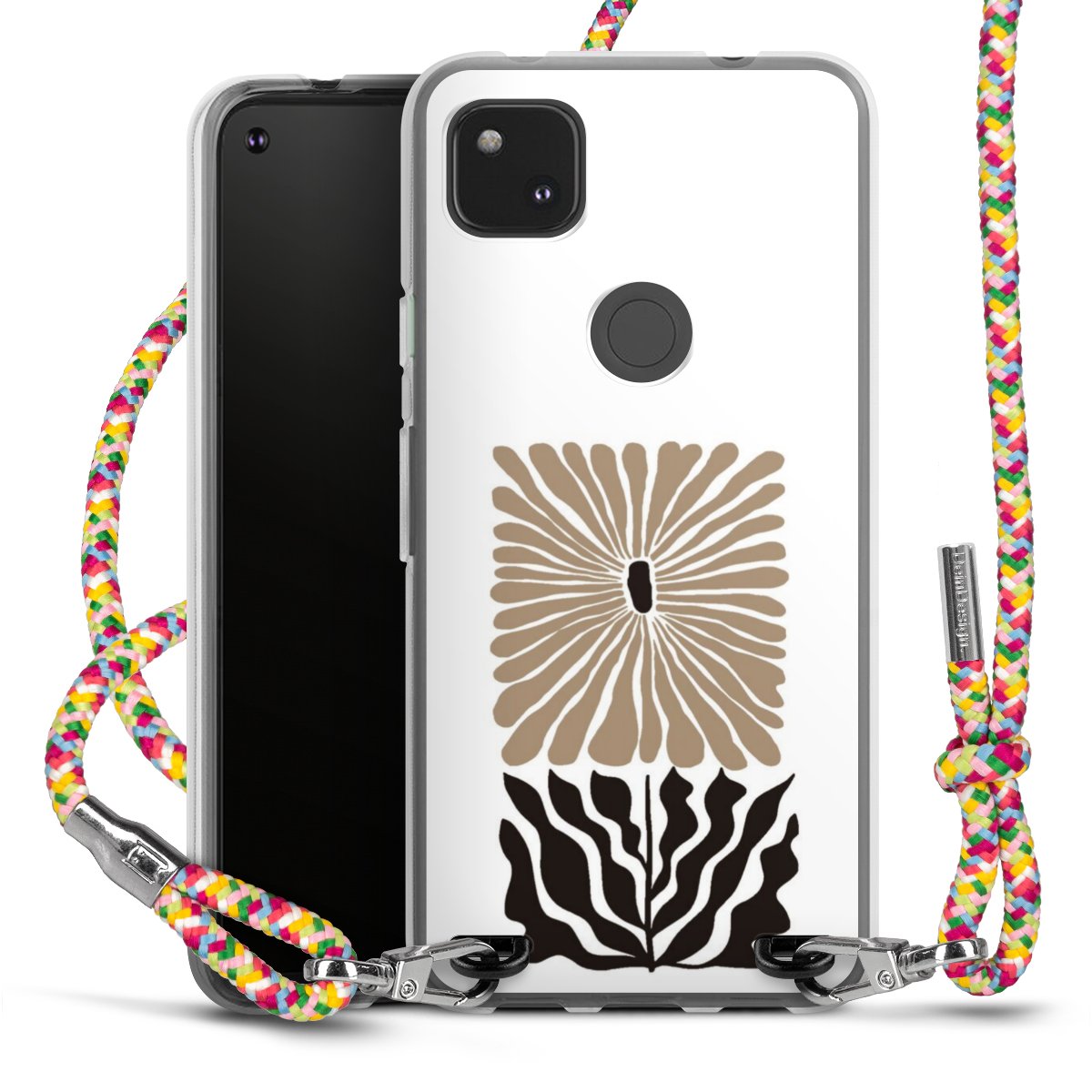 The flexible case is made from a highquality TPU material (thermoplastic Polyurethan). Thanks to its longlasting and break resistant characterisitcs, the case is flexible yet consistent in form and has a great grip and feel. The textile strap made from Polyester gives a chic yet casual accent allowing you to carry your phone like a bag or necklace - a practical gadget perfect for your next adventure. The textile strap is about 1.70 meters long and the length can easily be adjusted through the knots. Our Carry Case is available in Colourful, Mint-Camouflage, Very-Berry, Sahara-Sand and Sparkling-Neon. The ends of the textile strap are covered with metallic end caps to protect them against fraying.