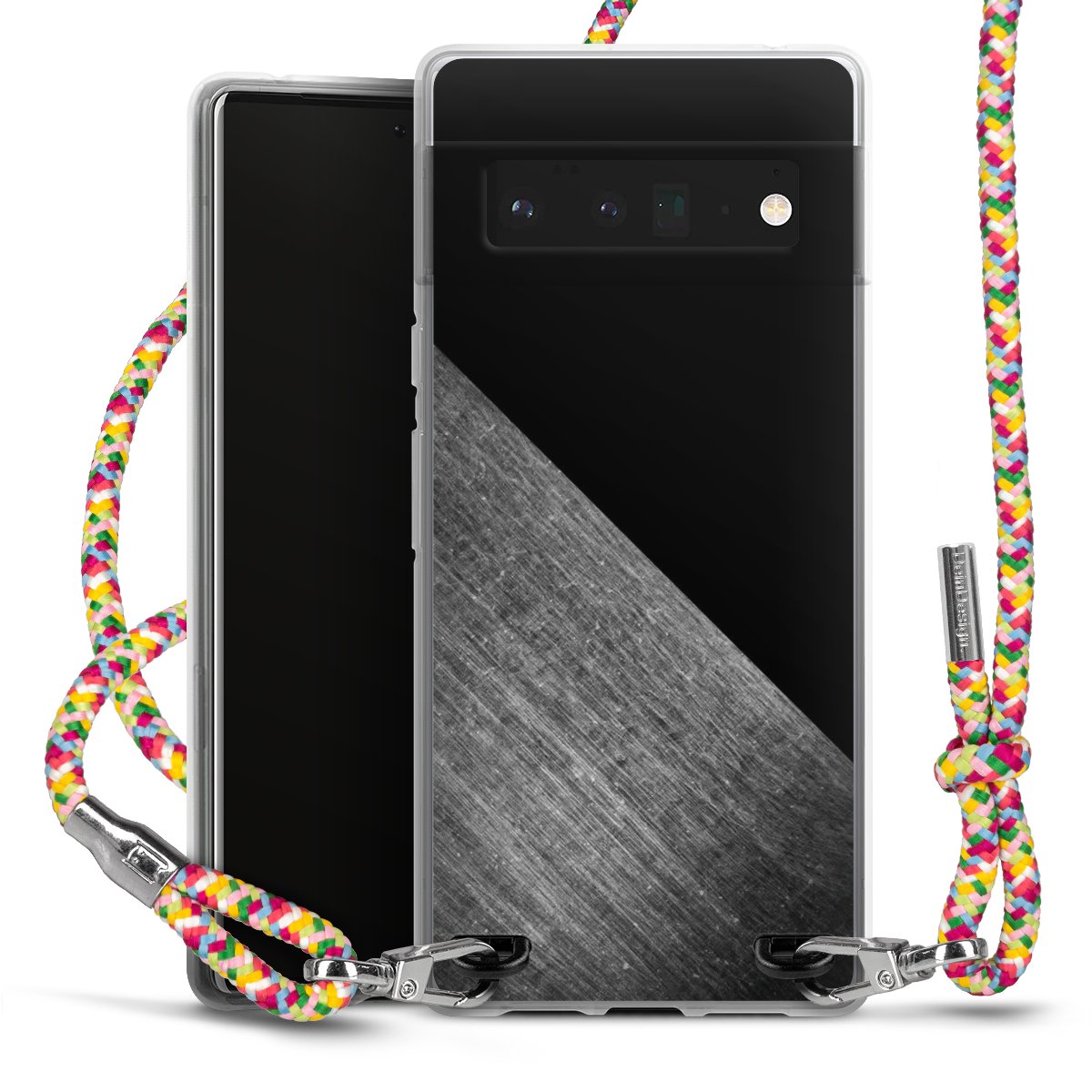 The flexible case is made from a highquality TPU material (thermoplastic Polyurethan). Thanks to its longlasting and break resistant characterisitcs, the case is flexible yet consistent in form and has a great grip and feel. The textile strap made from Polyester gives a chic yet casual accent allowing you to carry your phone like a bag or necklace - a practical gadget perfect for your next adventure. The textile strap is about 1.70 meters long and the length can easily be adjusted through the knots. Our Carry Case is available in Colourful, Mint-Camouflage, Very-Berry, Sahara-Sand and Sparkling-Neon. The ends of the textile strap are covered with metallic end caps to protect them against fraying.