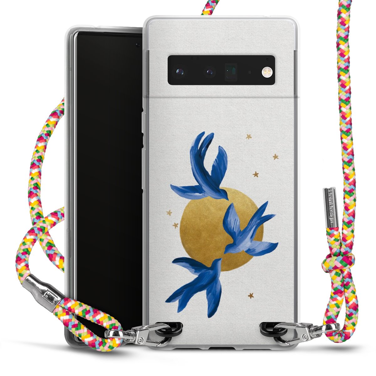 The flexible case is made from a highquality TPU material (thermoplastic Polyurethan). Thanks to its longlasting and break resistant characterisitcs, the case is flexible yet consistent in form and has a great grip and feel. The textile strap made from Polyester gives a chic yet casual accent allowing you to carry your phone like a bag or necklace - a practical gadget perfect for your next adventure. The textile strap is about 1.70 meters long and the length can easily be adjusted through the knots. Our Carry Case is available in Colourful, Mint-Camouflage, Very-Berry, Sahara-Sand and Sparkling-Neon. The ends of the textile strap are covered with metallic end caps to protect them against fraying.