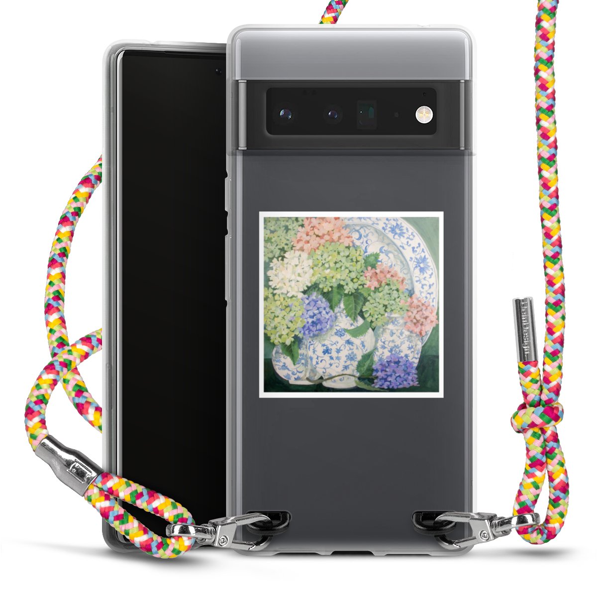 The flexible case is made from a highquality TPU material (thermoplastic Polyurethan). Thanks to its longlasting and break resistant characterisitcs, the case is flexible yet consistent in form and has a great grip and feel. The textile strap made from Polyester gives a chic yet casual accent allowing you to carry your phone like a bag or necklace - a practical gadget perfect for your next adventure. The textile strap is about 1.70 meters long and the length can easily be adjusted through the knots. Our Carry Case is available in Colourful, Mint-Camouflage, Very-Berry, Sahara-Sand and Sparkling-Neon. The ends of the textile strap are covered with metallic end caps to protect them against fraying.