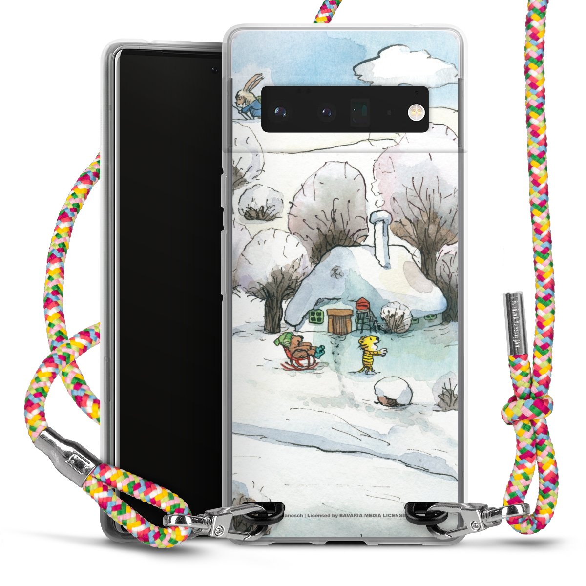 The flexible case is made from a highquality TPU material (thermoplastic Polyurethan). Thanks to its longlasting and break resistant characterisitcs, the case is flexible yet consistent in form and has a great grip and feel. The textile strap made from Polyester gives a chic yet casual accent allowing you to carry your phone like a bag or necklace - a practical gadget perfect for your next adventure. The textile strap is about 1.70 meters long and the length can easily be adjusted through the knots. Our Carry Case is available in Colourful, Mint-Camouflage, Very-Berry, Sahara-Sand and Sparkling-Neon. The ends of the textile strap are covered with metallic end caps to protect them against fraying.