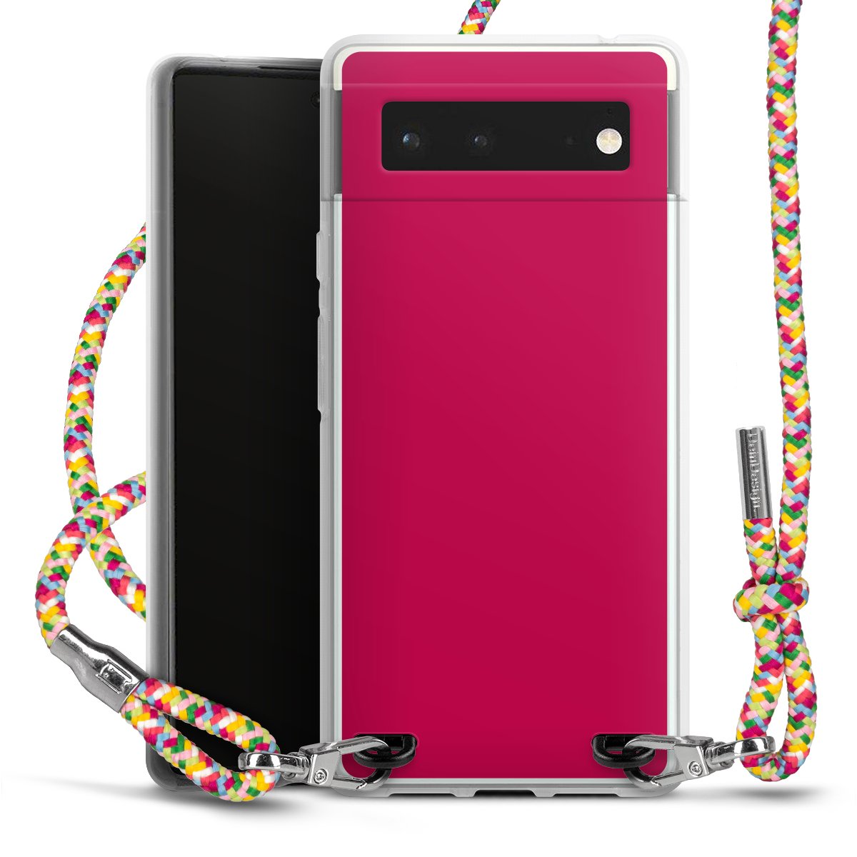 The flexible case is made from a highquality TPU material (thermoplastic Polyurethan). Thanks to its longlasting and break resistant characterisitcs, the case is flexible yet consistent in form and has a great grip and feel. The textile strap made from Polyester gives a chic yet casual accent allowing you to carry your phone like a bag or necklace - a practical gadget perfect for your next adventure. The textile strap is about 1.70 meters long and the length can easily be adjusted through the knots. Our Carry Case is available in Colourful, Mint-Camouflage, Very-Berry, Sahara-Sand and Sparkling-Neon. The ends of the textile strap are covered with metallic end caps to protect them against fraying.