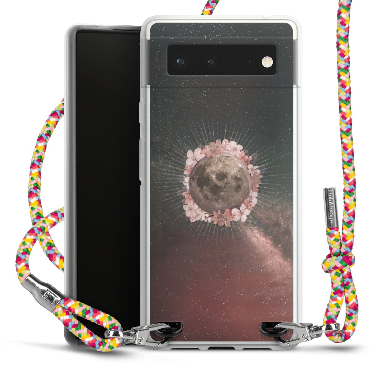 The flexible case is made from a highquality TPU material (thermoplastic Polyurethan). Thanks to its longlasting and break resistant characterisitcs, the case is flexible yet consistent in form and has a great grip and feel. The textile strap made from Polyester gives a chic yet casual accent allowing you to carry your phone like a bag or necklace - a practical gadget perfect for your next adventure. The textile strap is about 1.70 meters long and the length can easily be adjusted through the knots. Our Carry Case is available in Colourful, Mint-Camouflage, Very-Berry, Sahara-Sand and Sparkling-Neon. The ends of the textile strap are covered with metallic end caps to protect them against fraying.