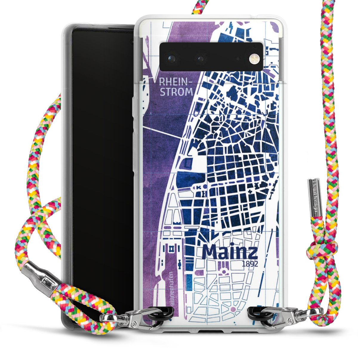 The flexible case is made from a highquality TPU material (thermoplastic Polyurethan). Thanks to its longlasting and break resistant characterisitcs, the case is flexible yet consistent in form and has a great grip and feel. The textile strap made from Polyester gives a chic yet casual accent allowing you to carry your phone like a bag or necklace - a practical gadget perfect for your next adventure. The textile strap is about 1.70 meters long and the length can easily be adjusted through the knots. Our Carry Case is available in Colourful, Mint-Camouflage, Very-Berry, Sahara-Sand and Sparkling-Neon. The ends of the textile strap are covered with metallic end caps to protect them against fraying.