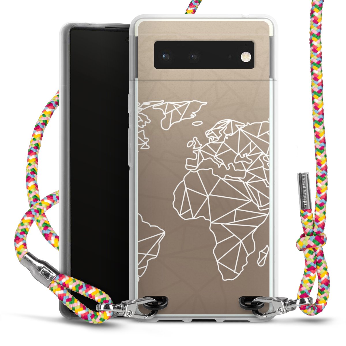 The flexible case is made from a highquality TPU material (thermoplastic Polyurethan). Thanks to its longlasting and break resistant characterisitcs, the case is flexible yet consistent in form and has a great grip and feel. The textile strap made from Polyester gives a chic yet casual accent allowing you to carry your phone like a bag or necklace - a practical gadget perfect for your next adventure. The textile strap is about 1.70 meters long and the length can easily be adjusted through the knots. Our Carry Case is available in Colourful, Mint-Camouflage, Very-Berry, Sahara-Sand and Sparkling-Neon. The ends of the textile strap are covered with metallic end caps to protect them against fraying.