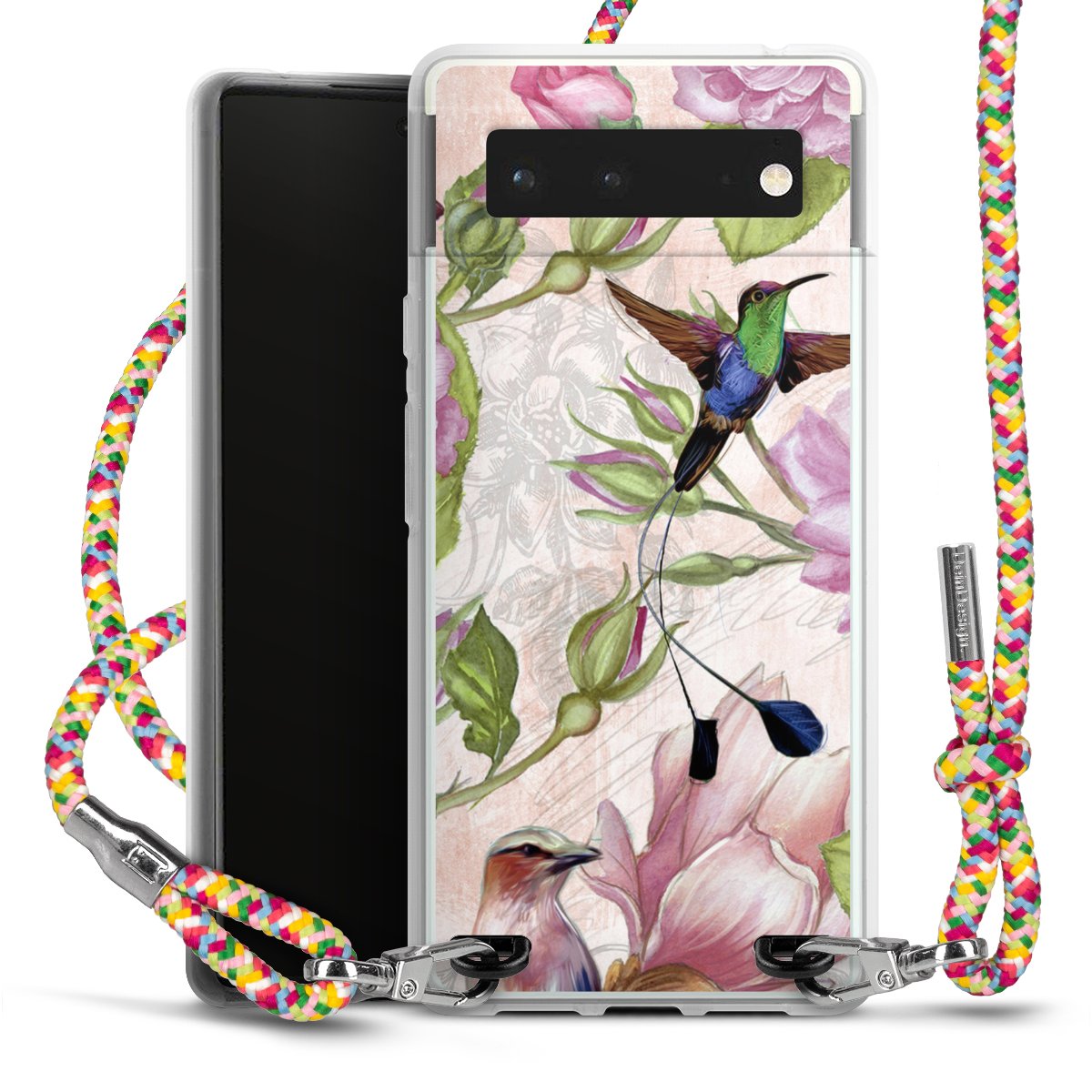 The flexible case is made from a highquality TPU material (thermoplastic Polyurethan). Thanks to its longlasting and break resistant characterisitcs, the case is flexible yet consistent in form and has a great grip and feel. The textile strap made from Polyester gives a chic yet casual accent allowing you to carry your phone like a bag or necklace - a practical gadget perfect for your next adventure. The textile strap is about 1.70 meters long and the length can easily be adjusted through the knots. Our Carry Case is available in Colourful, Mint-Camouflage, Very-Berry, Sahara-Sand and Sparkling-Neon. The ends of the textile strap are covered with metallic end caps to protect them against fraying.