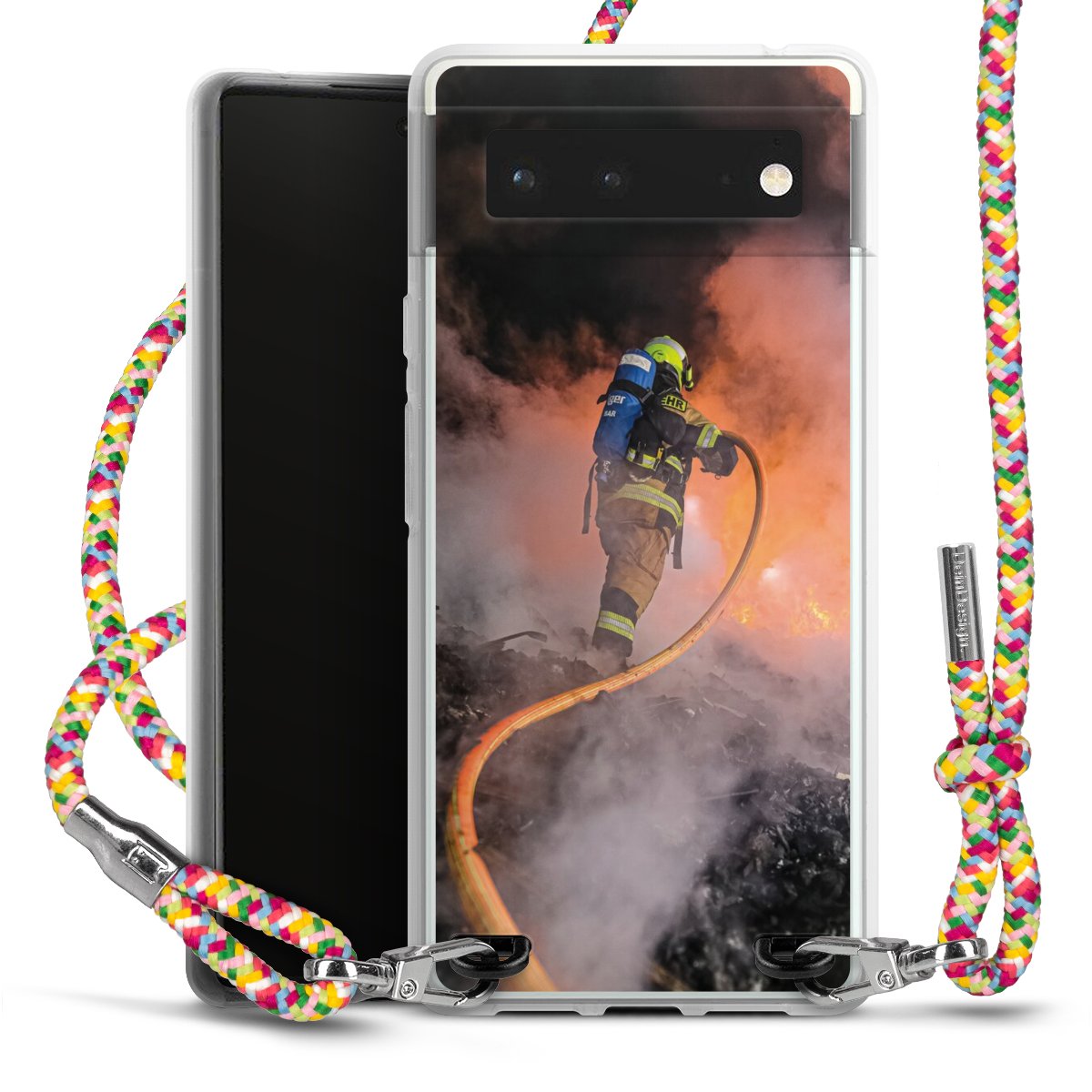 The flexible case is made from a highquality TPU material (thermoplastic Polyurethan). Thanks to its longlasting and break resistant characterisitcs, the case is flexible yet consistent in form and has a great grip and feel. The textile strap made from Polyester gives a chic yet casual accent allowing you to carry your phone like a bag or necklace - a practical gadget perfect for your next adventure. The textile strap is about 1.70 meters long and the length can easily be adjusted through the knots. Our Carry Case is available in Colourful, Mint-Camouflage, Very-Berry, Sahara-Sand and Sparkling-Neon. The ends of the textile strap are covered with metallic end caps to protect them against fraying.