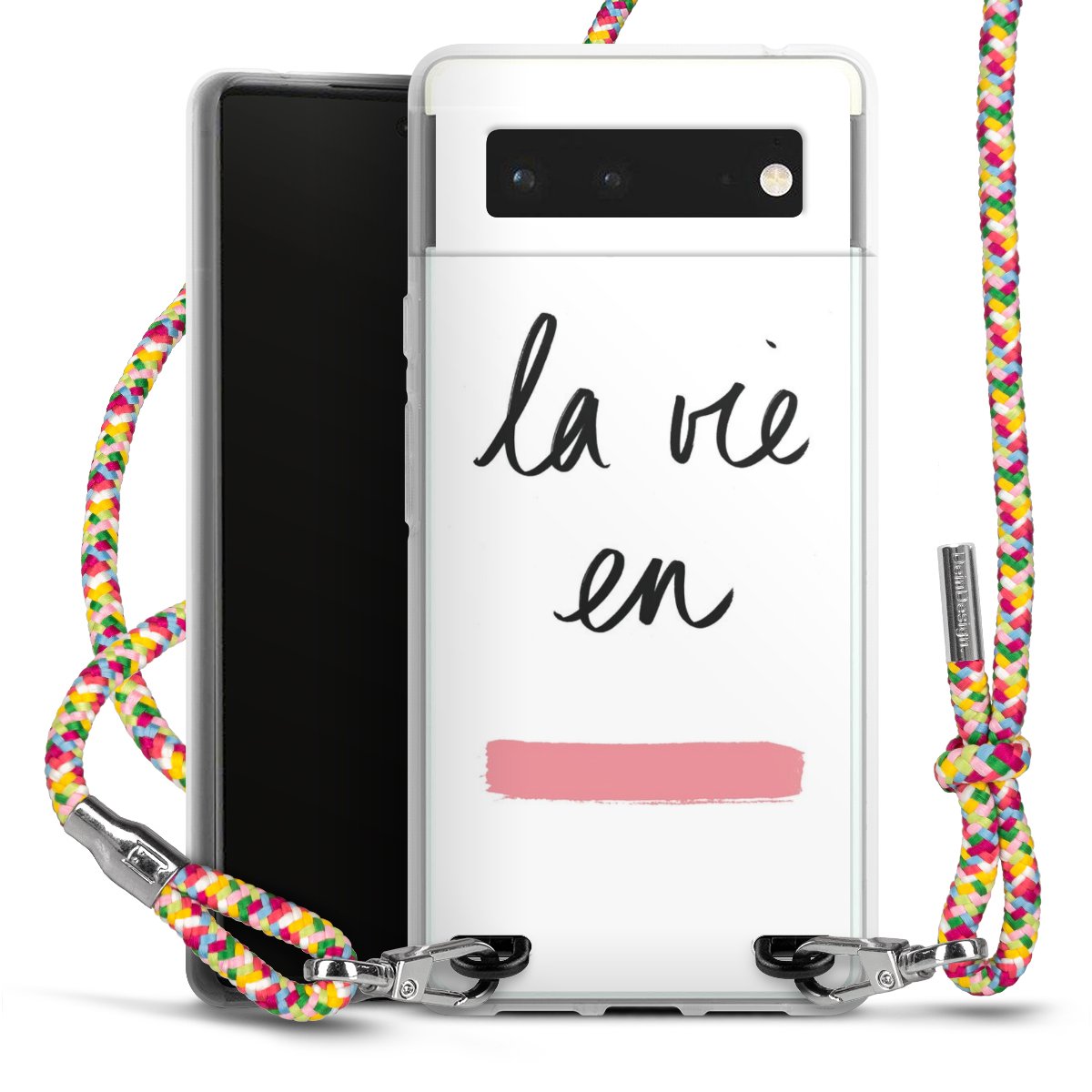 The flexible case is made from a highquality TPU material (thermoplastic Polyurethan). Thanks to its longlasting and break resistant characterisitcs, the case is flexible yet consistent in form and has a great grip and feel. The textile strap made from Polyester gives a chic yet casual accent allowing you to carry your phone like a bag or necklace - a practical gadget perfect for your next adventure. The textile strap is about 1.70 meters long and the length can easily be adjusted through the knots. Our Carry Case is available in Colourful, Mint-Camouflage, Very-Berry, Sahara-Sand and Sparkling-Neon. The ends of the textile strap are covered with metallic end caps to protect them against fraying.