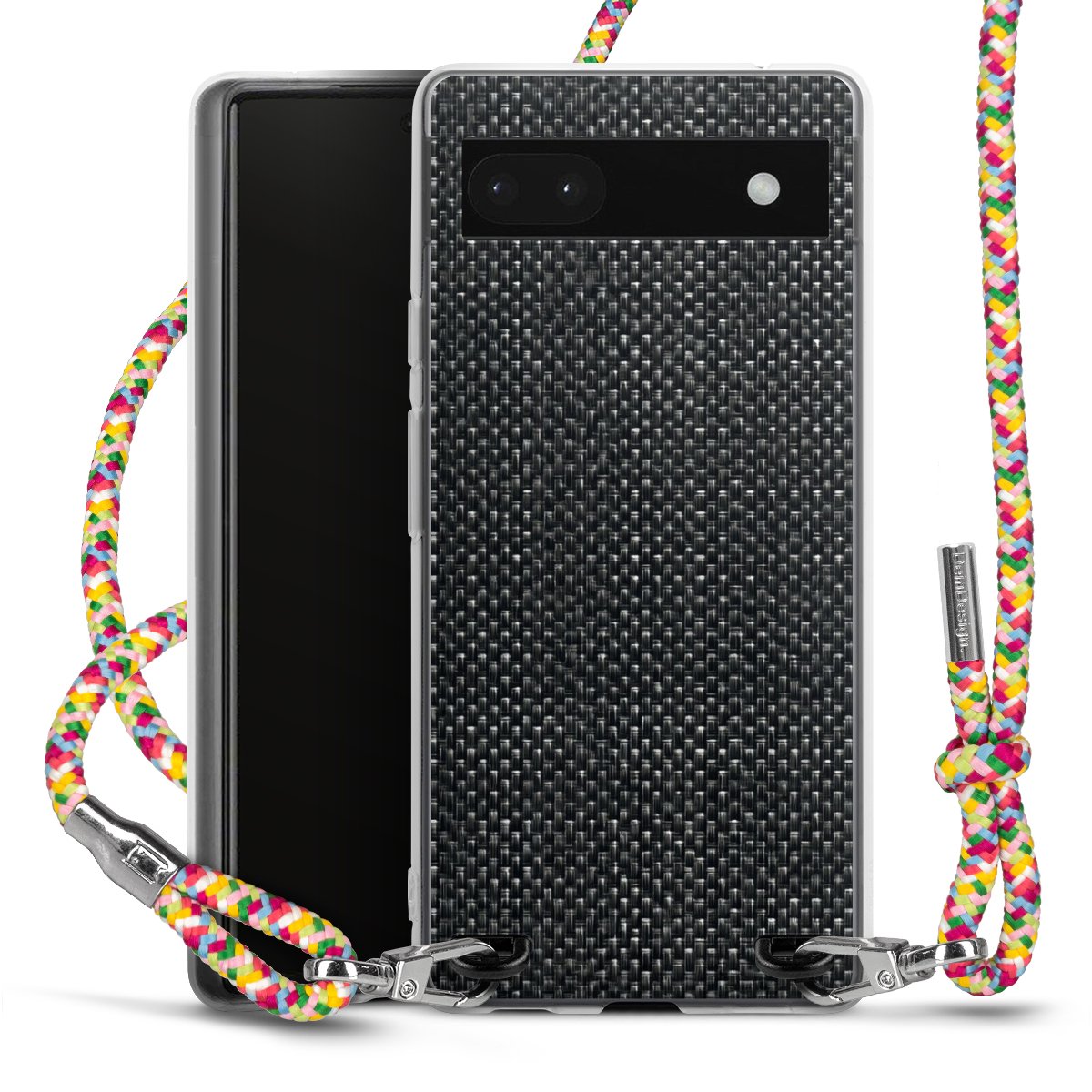 The flexible case is made from a highquality TPU material (thermoplastic Polyurethan). Thanks to its longlasting and break resistant characterisitcs, the case is flexible yet consistent in form and has a great grip and feel. The textile strap made from Polyester gives a chic yet casual accent allowing you to carry your phone like a bag or necklace - a practical gadget perfect for your next adventure. The textile strap is about 1.70 meters long and the length can easily be adjusted through the knots. Our Carry Case is available in Colourful, Mint-Camouflage, Very-Berry, Sahara-Sand and Sparkling-Neon. The ends of the textile strap are covered with metallic end caps to protect them against fraying.