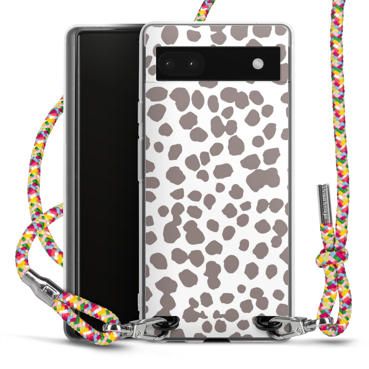 The flexible case is made from a highquality TPU material (thermoplastic Polyurethan). Thanks to its longlasting and break resistant characterisitcs, the case is flexible yet consistent in form and has a great grip and feel. The textile strap made from Polyester gives a chic yet casual accent allowing you to carry your phone like a bag or necklace - a practical gadget perfect for your next adventure. The textile strap is about 1.70 meters long and the length can easily be adjusted through the knots. Our Carry Case is available in Colourful, Mint-Camouflage, Very-Berry, Sahara-Sand and Sparkling-Neon. The ends of the textile strap are covered with metallic end caps to protect them against fraying.