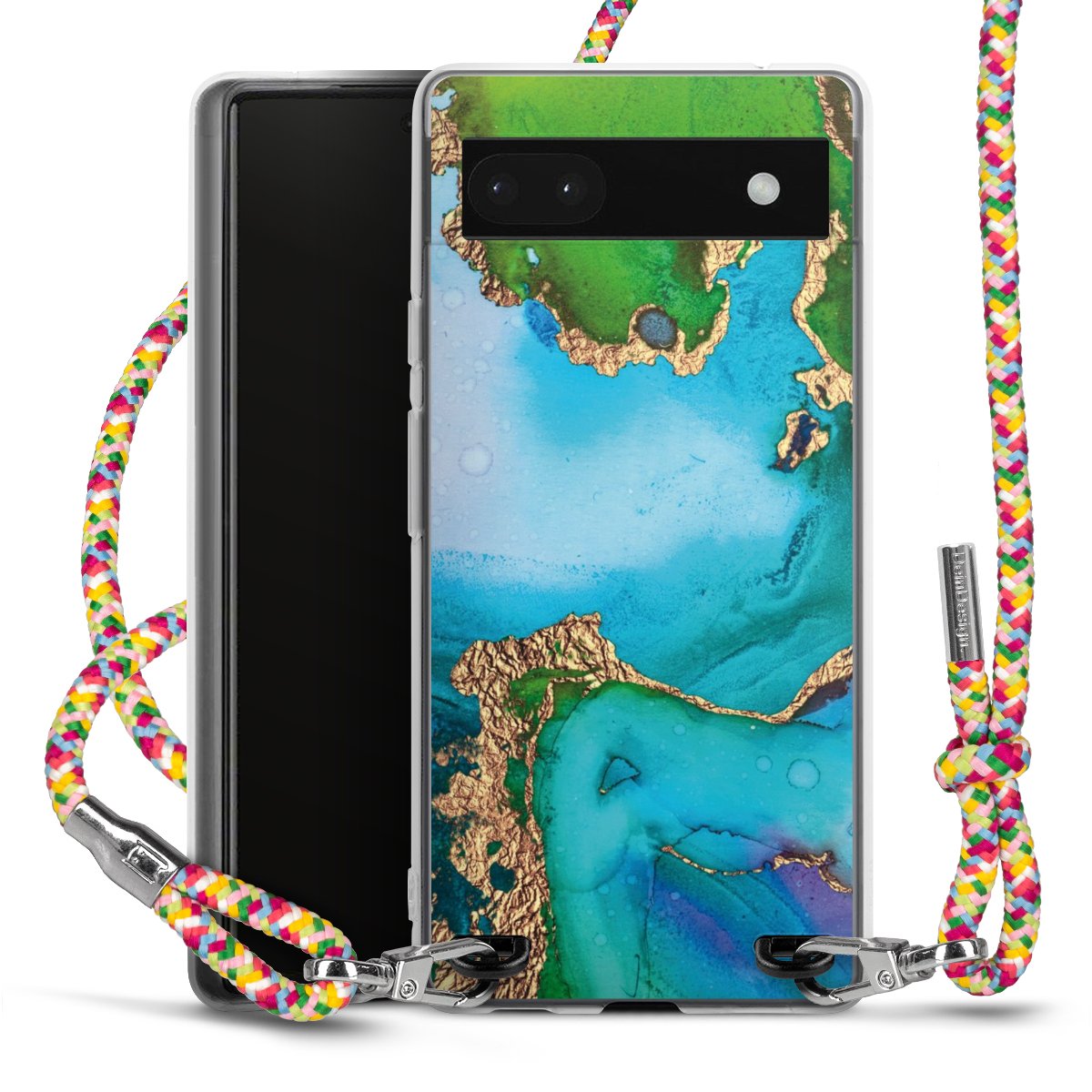 The flexible case is made from a highquality TPU material (thermoplastic Polyurethan). Thanks to its longlasting and break resistant characterisitcs, the case is flexible yet consistent in form and has a great grip and feel. The textile strap made from Polyester gives a chic yet casual accent allowing you to carry your phone like a bag or necklace - a practical gadget perfect for your next adventure. The textile strap is about 1.70 meters long and the length can easily be adjusted through the knots. Our Carry Case is available in Colourful, Mint-Camouflage, Very-Berry, Sahara-Sand and Sparkling-Neon. The ends of the textile strap are covered with metallic end caps to protect them against fraying.
