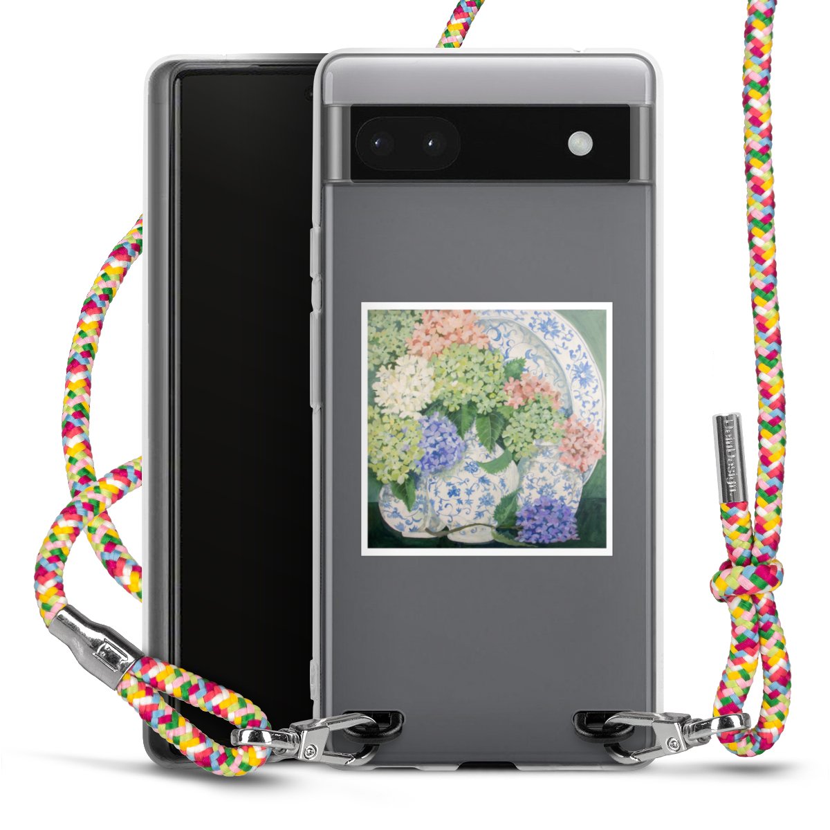 The flexible case is made from a highquality TPU material (thermoplastic Polyurethan). Thanks to its longlasting and break resistant characterisitcs, the case is flexible yet consistent in form and has a great grip and feel. The textile strap made from Polyester gives a chic yet casual accent allowing you to carry your phone like a bag or necklace - a practical gadget perfect for your next adventure. The textile strap is about 1.70 meters long and the length can easily be adjusted through the knots. Our Carry Case is available in Colourful, Mint-Camouflage, Very-Berry, Sahara-Sand and Sparkling-Neon. The ends of the textile strap are covered with metallic end caps to protect them against fraying.