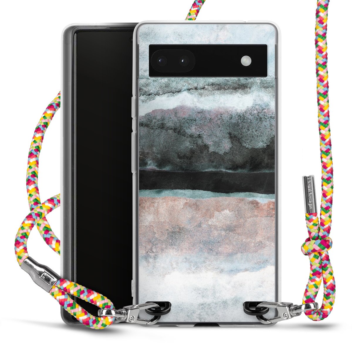 The flexible case is made from a highquality TPU material (thermoplastic Polyurethan). Thanks to its longlasting and break resistant characterisitcs, the case is flexible yet consistent in form and has a great grip and feel. The textile strap made from Polyester gives a chic yet casual accent allowing you to carry your phone like a bag or necklace - a practical gadget perfect for your next adventure. The textile strap is about 1.70 meters long and the length can easily be adjusted through the knots. Our Carry Case is available in Colourful, Mint-Camouflage, Very-Berry, Sahara-Sand and Sparkling-Neon. The ends of the textile strap are covered with metallic end caps to protect them against fraying.