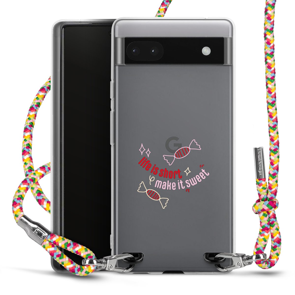 The flexible case is made from a highquality TPU material (thermoplastic Polyurethan). Thanks to its longlasting and break resistant characterisitcs, the case is flexible yet consistent in form and has a great grip and feel. The textile strap made from Polyester gives a chic yet casual accent allowing you to carry your phone like a bag or necklace - a practical gadget perfect for your next adventure. The textile strap is about 1.70 meters long and the length can easily be adjusted through the knots. Our Carry Case is available in Colourful, Mint-Camouflage, Very-Berry, Sahara-Sand and Sparkling-Neon. The ends of the textile strap are covered with metallic end caps to protect them against fraying.