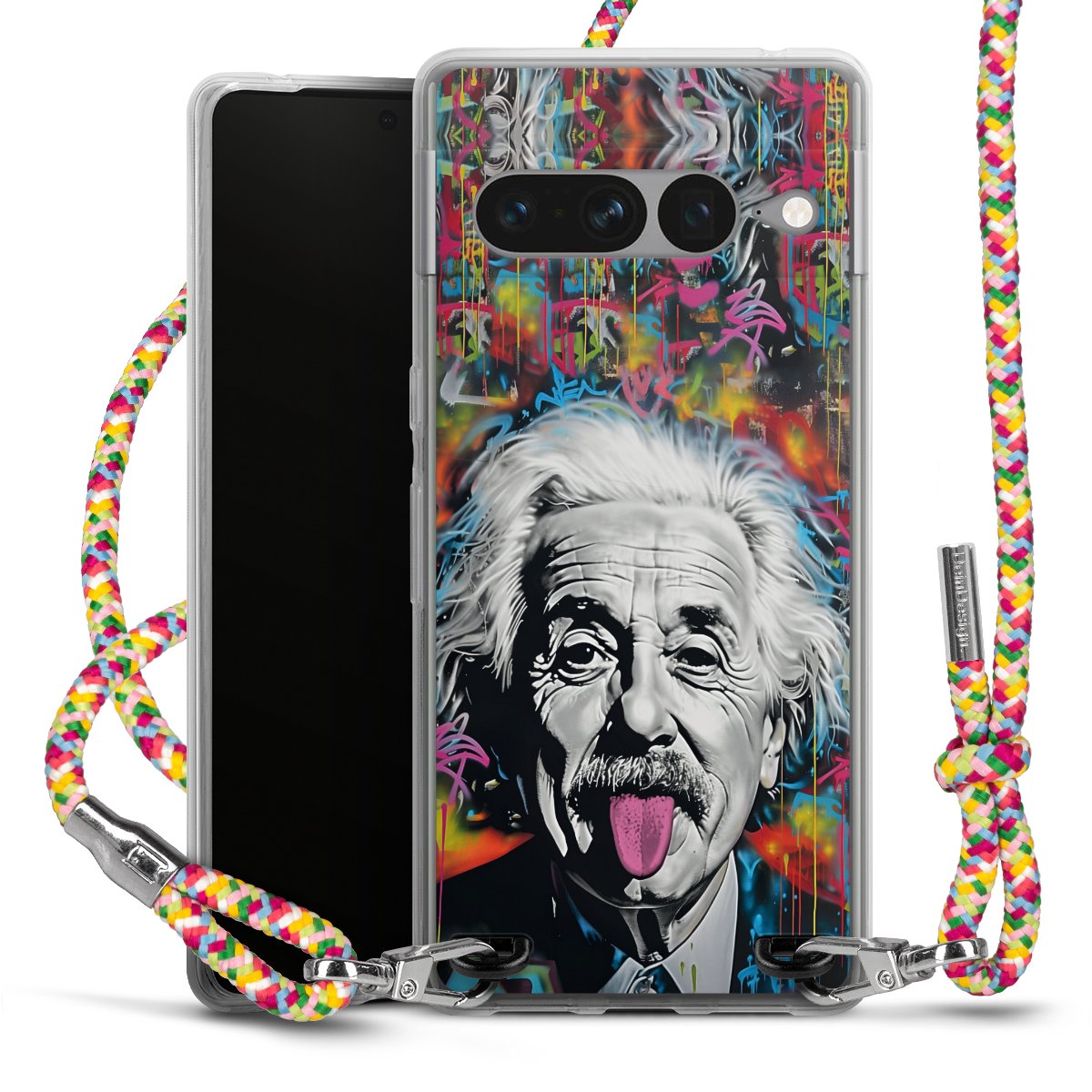 The flexible case is made from a highquality TPU material (thermoplastic Polyurethan). Thanks to its longlasting and break resistant characterisitcs, the case is flexible yet consistent in form and has a great grip and feel. The textile strap made from Polyester gives a chic yet casual accent allowing you to carry your phone like a bag or necklace - a practical gadget perfect for your next adventure. The textile strap is about 1.70 meters long and the length can easily be adjusted through the knots. Our Carry Case is available in Colourful, Mint-Camouflage, Very-Berry, Sahara-Sand and Sparkling-Neon. The ends of the textile strap are covered with metallic end caps to protect them against fraying.