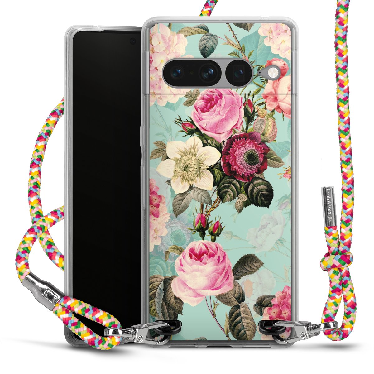 The flexible case is made from a highquality TPU material (thermoplastic Polyurethan). Thanks to its longlasting and break resistant characterisitcs, the case is flexible yet consistent in form and has a great grip and feel. The textile strap made from Polyester gives a chic yet casual accent allowing you to carry your phone like a bag or necklace - a practical gadget perfect for your next adventure. The textile strap is about 1.70 meters long and the length can easily be adjusted through the knots. Our Carry Case is available in Colourful, Mint-Camouflage, Very-Berry, Sahara-Sand and Sparkling-Neon. The ends of the textile strap are covered with metallic end caps to protect them against fraying.