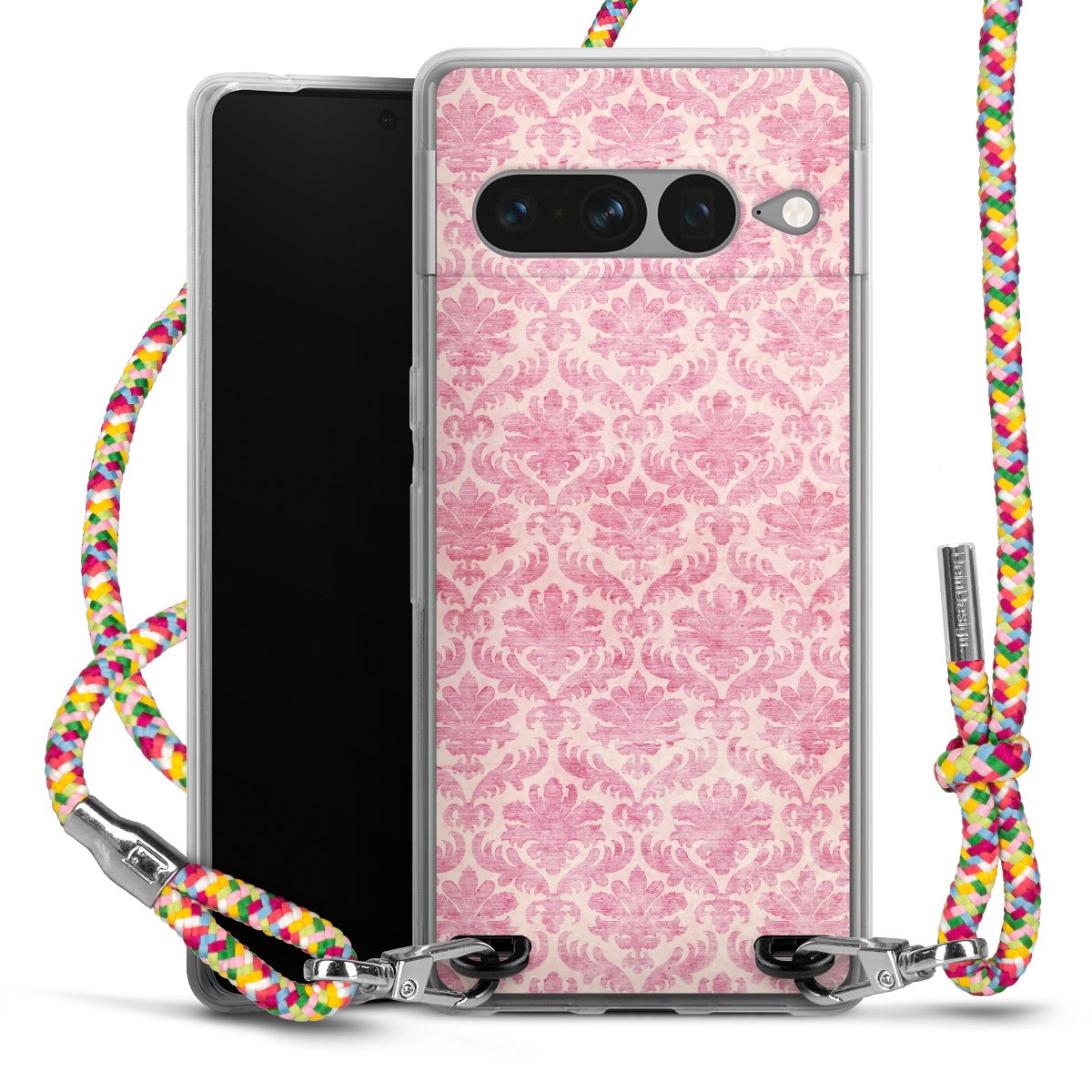 The flexible case is made from a highquality TPU material (thermoplastic Polyurethan). Thanks to its longlasting and break resistant characterisitcs, the case is flexible yet consistent in form and has a great grip and feel. The textile strap made from Polyester gives a chic yet casual accent allowing you to carry your phone like a bag or necklace - a practical gadget perfect for your next adventure. The textile strap is about 1.70 meters long and the length can easily be adjusted through the knots. Our Carry Case is available in Colourful, Mint-Camouflage, Very-Berry, Sahara-Sand and Sparkling-Neon. The ends of the textile strap are covered with metallic end caps to protect them against fraying.