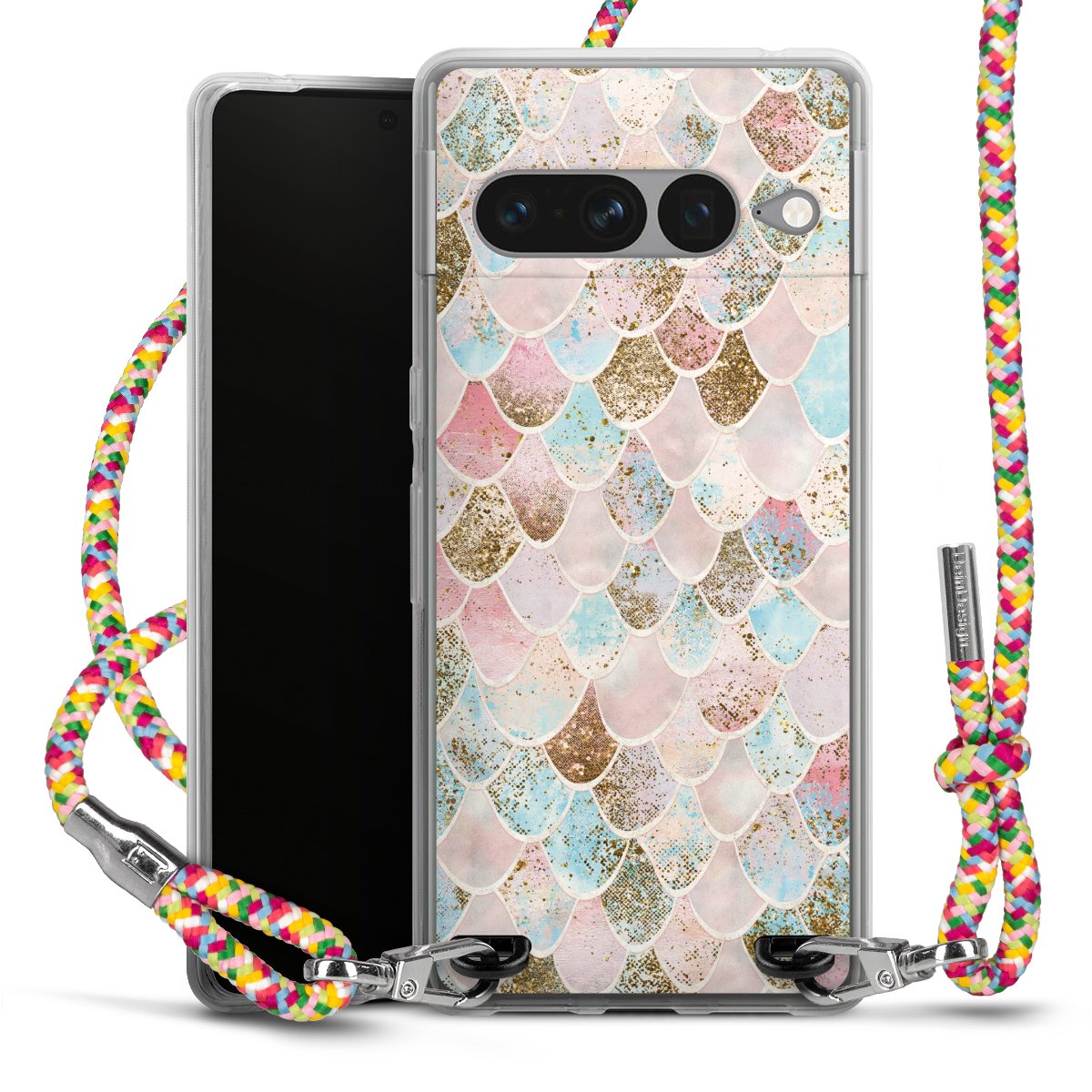 The flexible case is made from a highquality TPU material (thermoplastic Polyurethan). Thanks to its longlasting and break resistant characterisitcs, the case is flexible yet consistent in form and has a great grip and feel. The textile strap made from Polyester gives a chic yet casual accent allowing you to carry your phone like a bag or necklace - a practical gadget perfect for your next adventure. The textile strap is about 1.70 meters long and the length can easily be adjusted through the knots. Our Carry Case is available in Colourful, Mint-Camouflage, Very-Berry, Sahara-Sand and Sparkling-Neon. The ends of the textile strap are covered with metallic end caps to protect them against fraying.