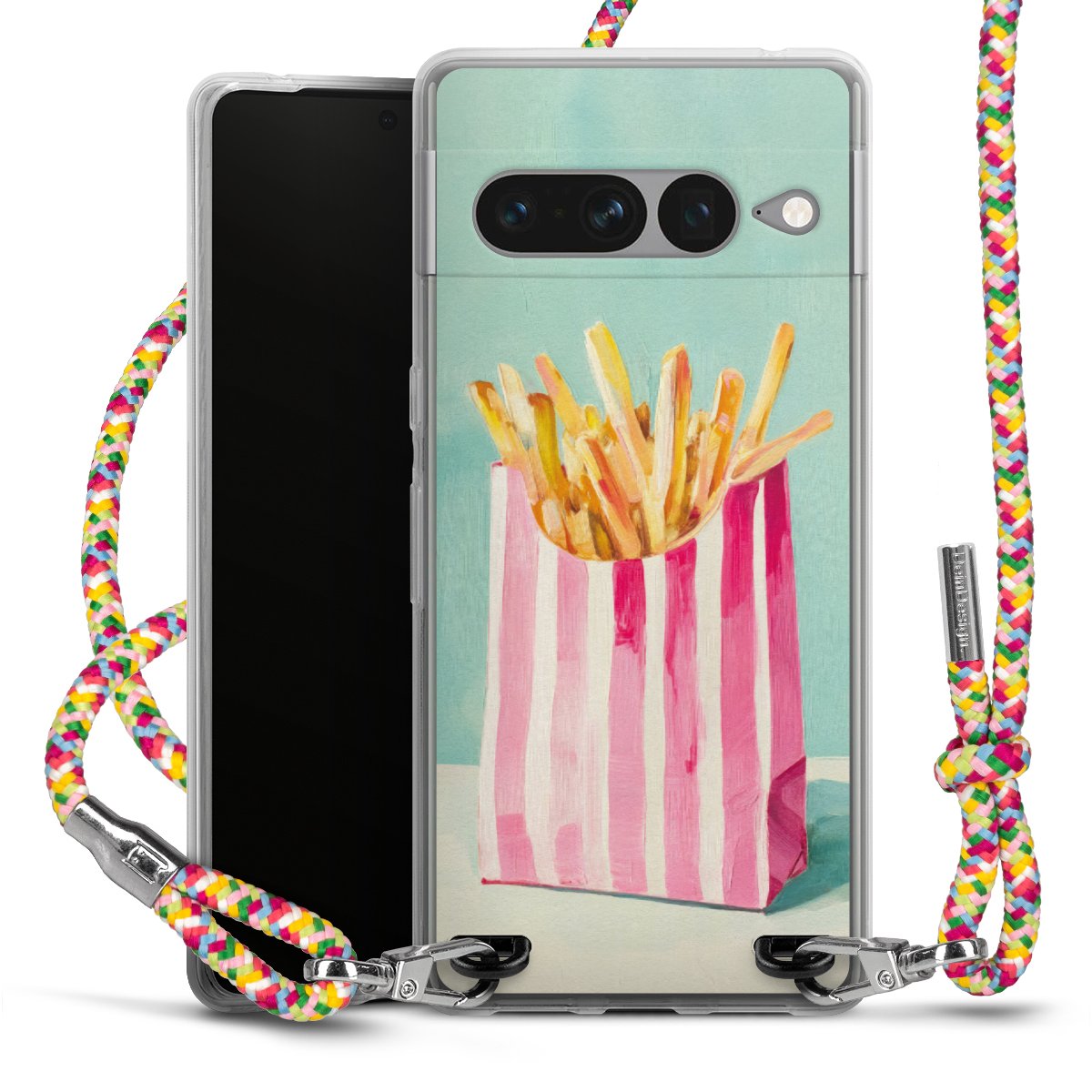 The flexible case is made from a highquality TPU material (thermoplastic Polyurethan). Thanks to its longlasting and break resistant characterisitcs, the case is flexible yet consistent in form and has a great grip and feel. The textile strap made from Polyester gives a chic yet casual accent allowing you to carry your phone like a bag or necklace - a practical gadget perfect for your next adventure. The textile strap is about 1.70 meters long and the length can easily be adjusted through the knots. Our Carry Case is available in Colourful, Mint-Camouflage, Very-Berry, Sahara-Sand and Sparkling-Neon. The ends of the textile strap are covered with metallic end caps to protect them against fraying.