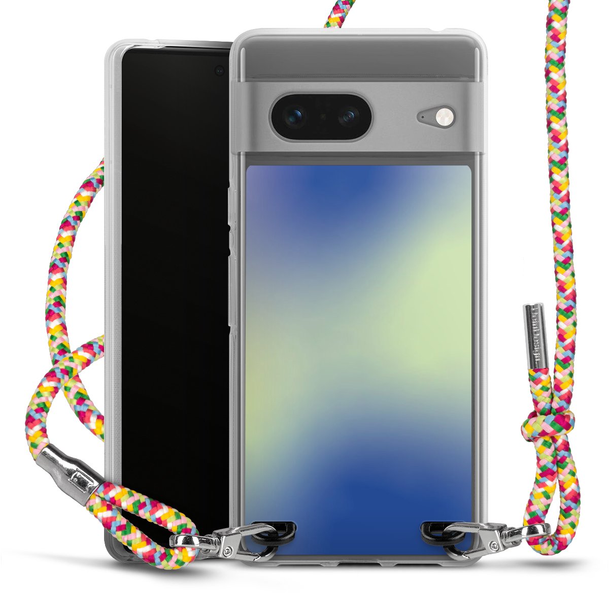 The flexible case is made from a highquality TPU material (thermoplastic Polyurethan). Thanks to its longlasting and break resistant characterisitcs, the case is flexible yet consistent in form and has a great grip and feel. The textile strap made from Polyester gives a chic yet casual accent allowing you to carry your phone like a bag or necklace - a practical gadget perfect for your next adventure. The textile strap is about 1.70 meters long and the length can easily be adjusted through the knots. Our Carry Case is available in Colourful, Mint-Camouflage, Very-Berry, Sahara-Sand and Sparkling-Neon. The ends of the textile strap are covered with metallic end caps to protect them against fraying.
